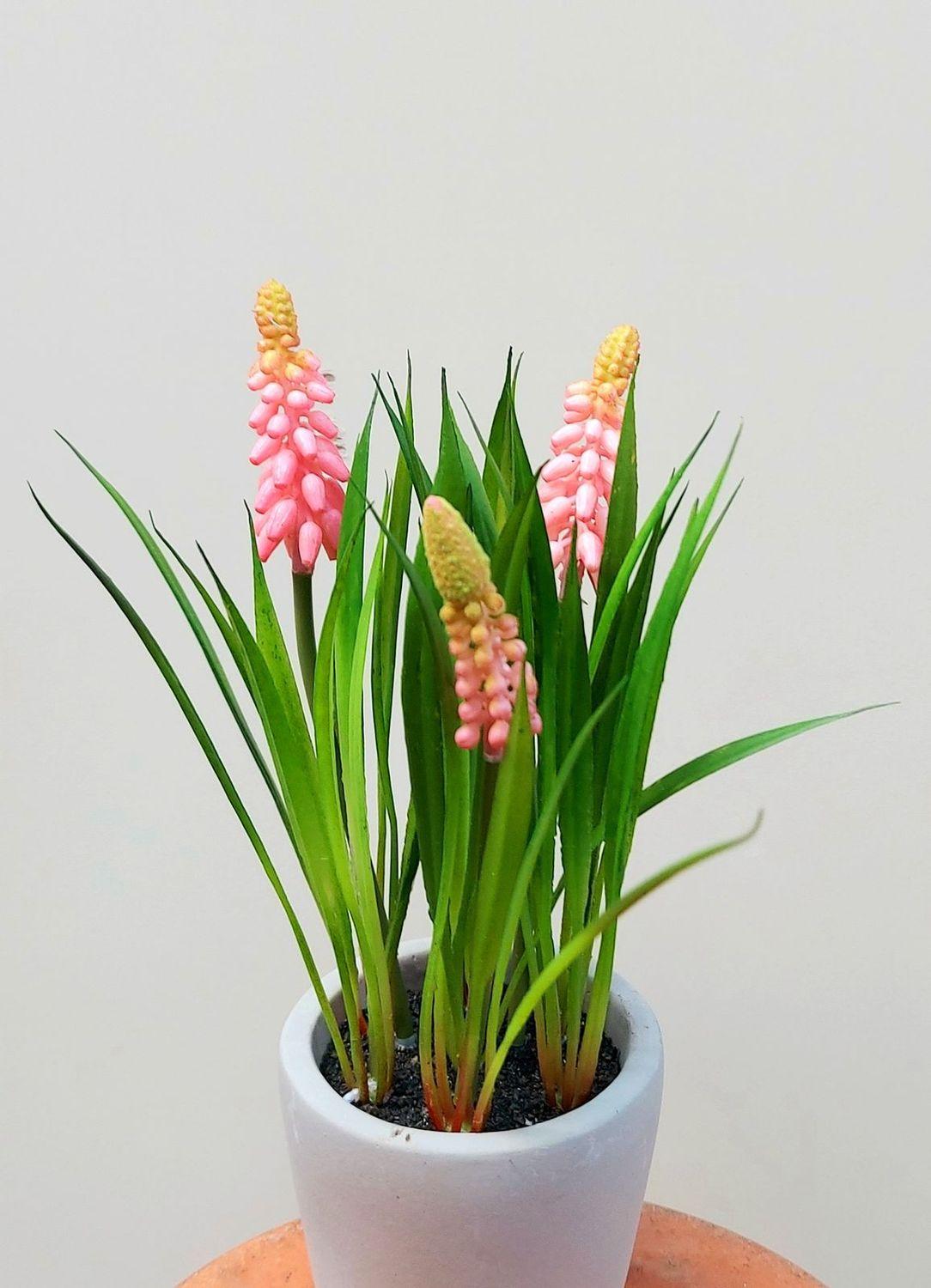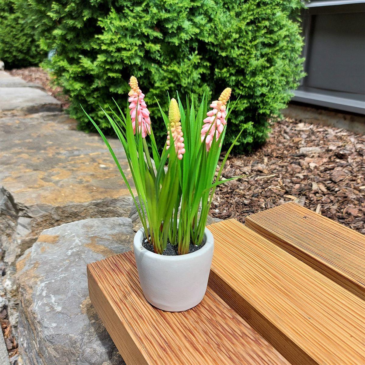 Fleur décorative Muscari NARMADA dans un pot en ciment, rose, 20cm