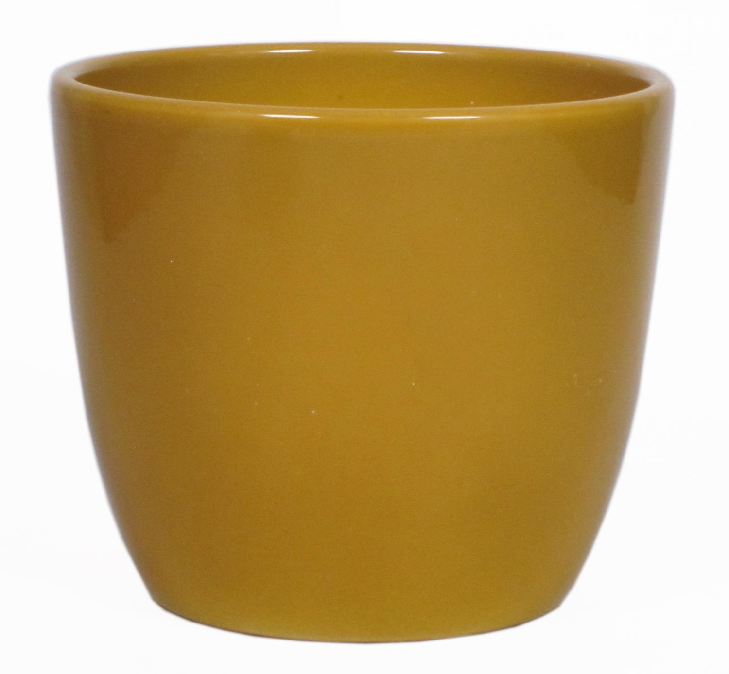 Cache-pot TEHERAN BASAR en céramique de couleur jaune ocre avec un diamètre d'environ 32 cm et une hauteur d'environ 27 cm.