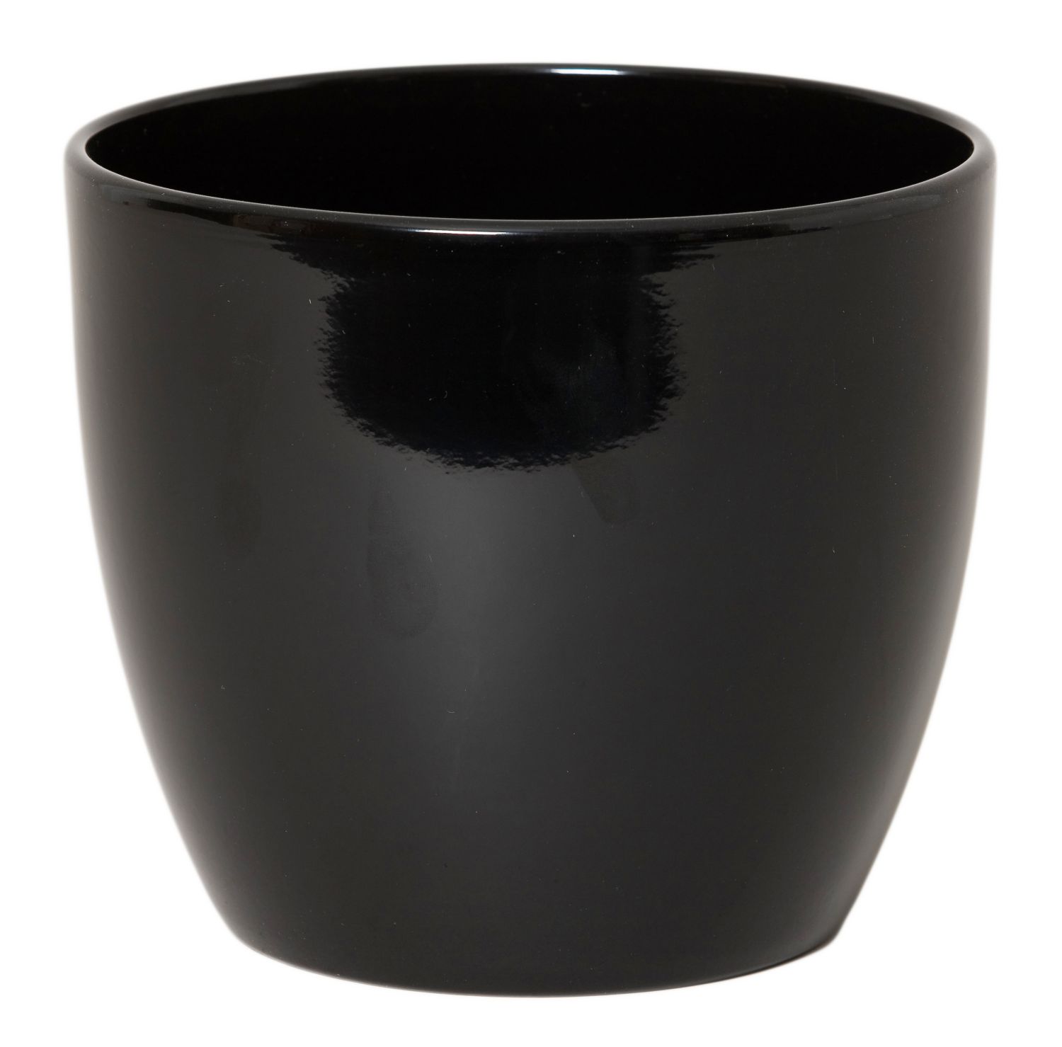 Cache-pot TEHERAN BASAR en céramique de couleur noire avec un diamètre d'environ 32 cm et une hauteur d'environ 27 cm.