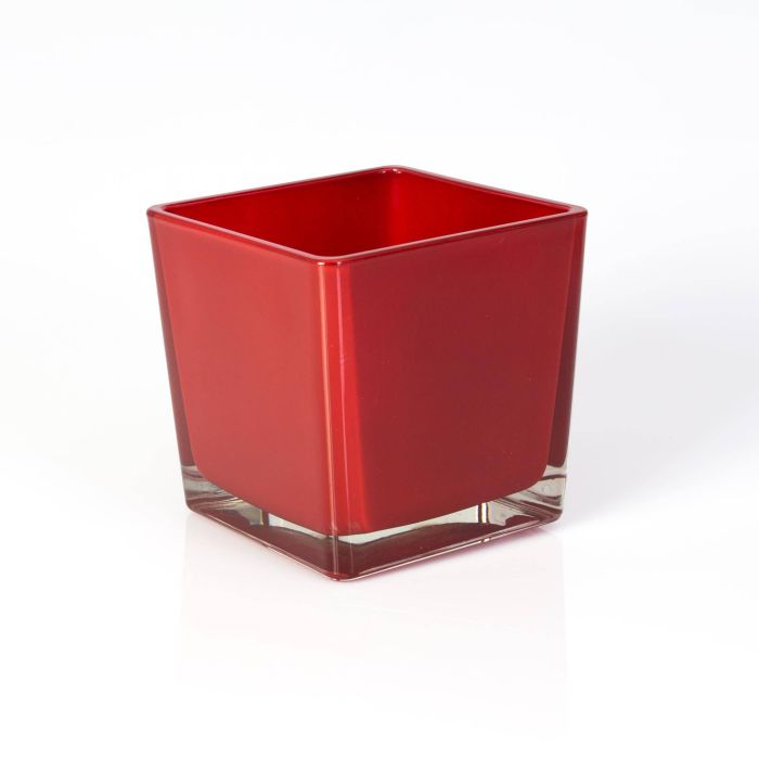 Grand photophore / Petit vase en verre KIM EARTH, rouge, 12x12x12cm