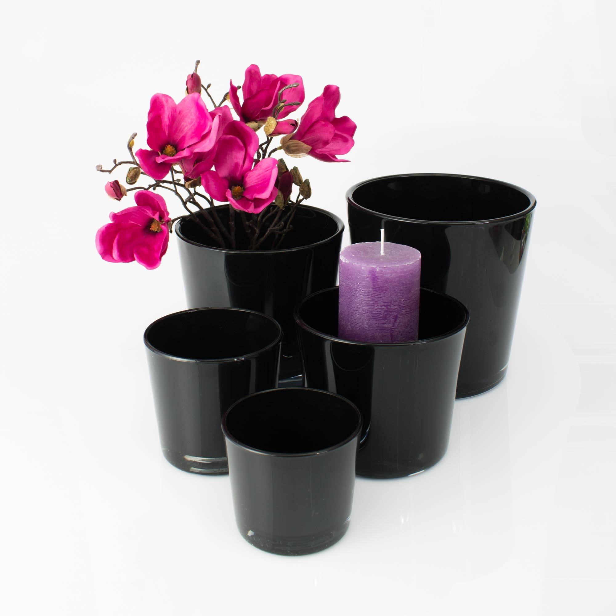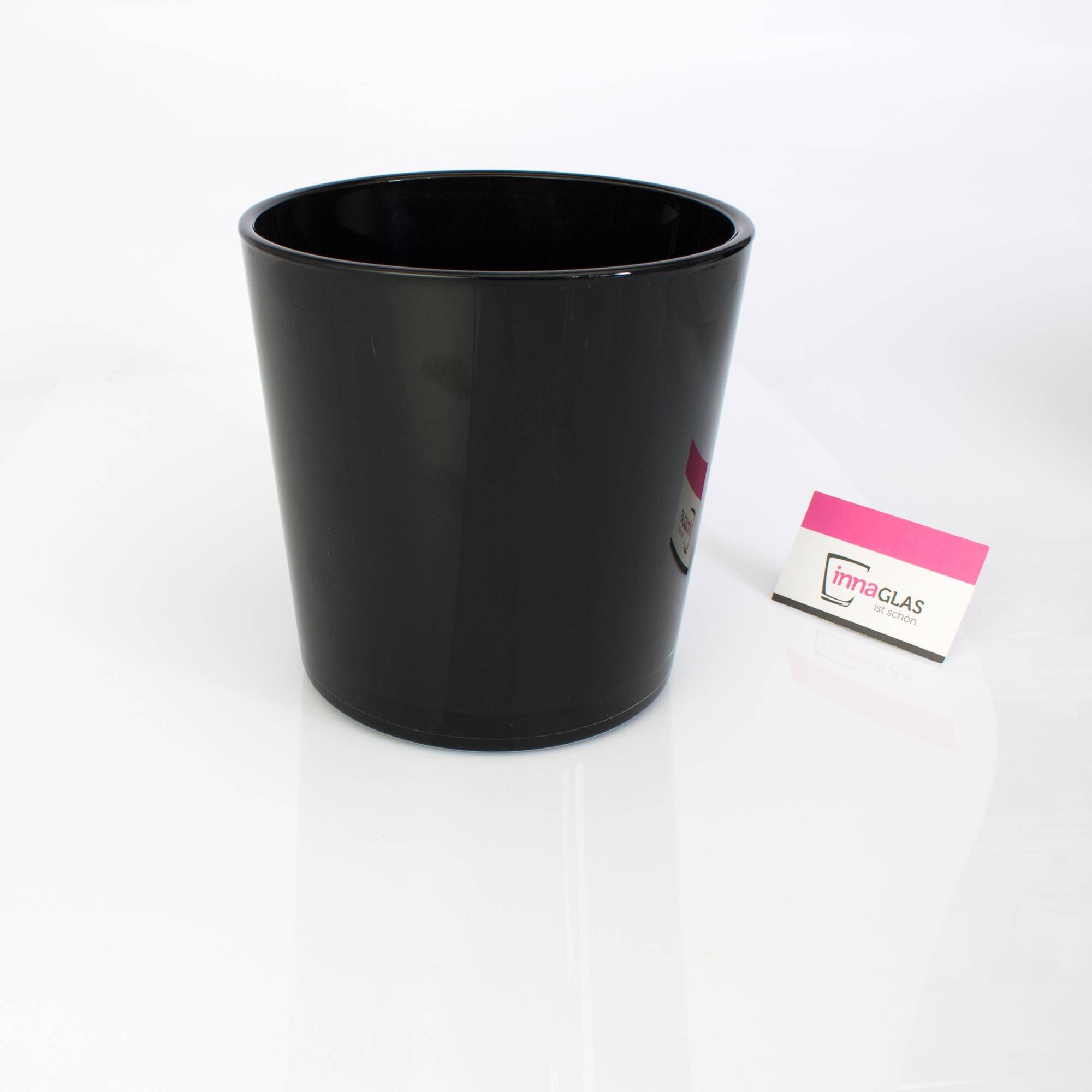 Grand vase / Cache-pot ALENA en verre, noir, 19cm, Ø18,5cm