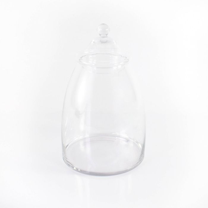 Bonbonnière en verre MIRA avec son couvercle. Ce joli bocal en verre est idéal pour stocker des sucreries, des bonbons, des gâteaux, dans la cuisine, ou pour décorer les étagères d'une boutique.