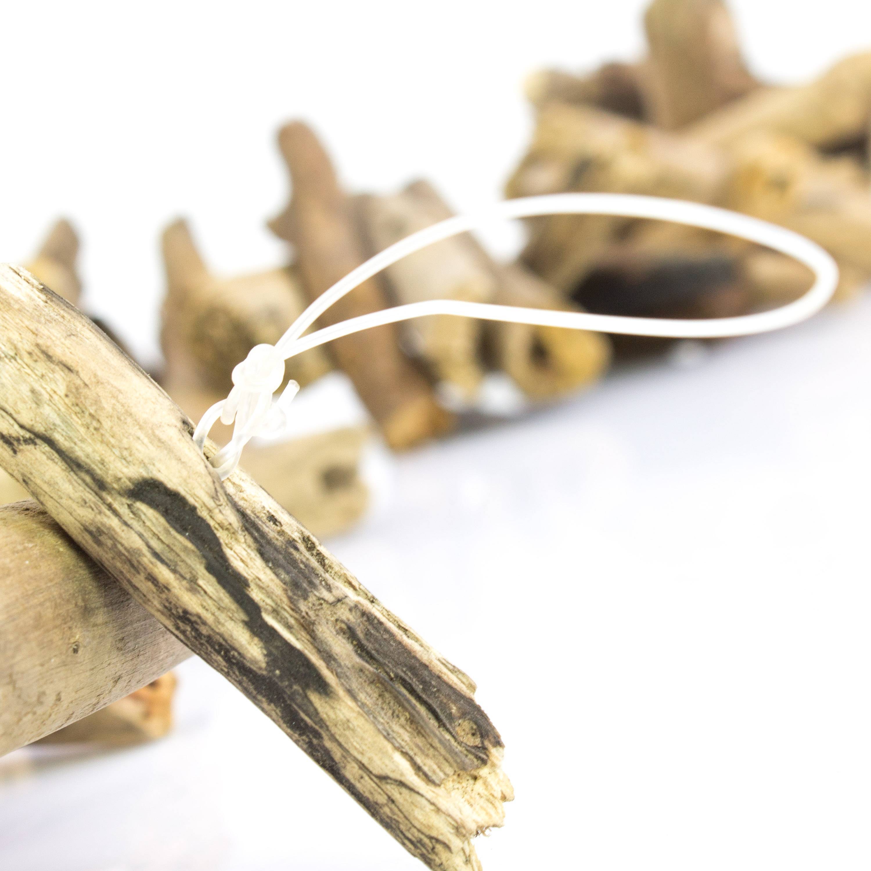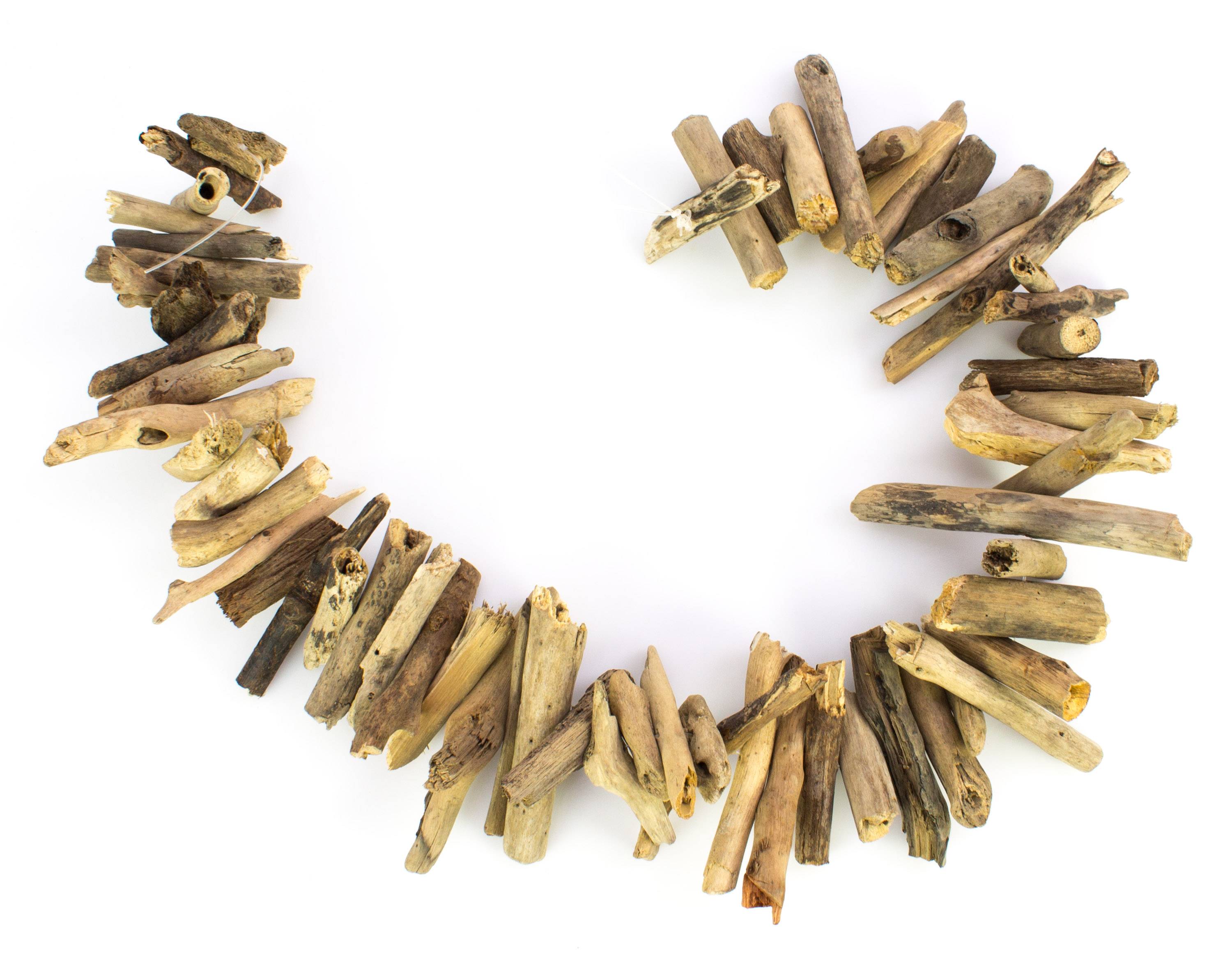 Morceaux de bois flotté séché attachés les uns aux autres d'une longueur totale d'environ 105 cm. Le bois est à l'état naturel, c'est un élément décoratif épuré et moderne.
