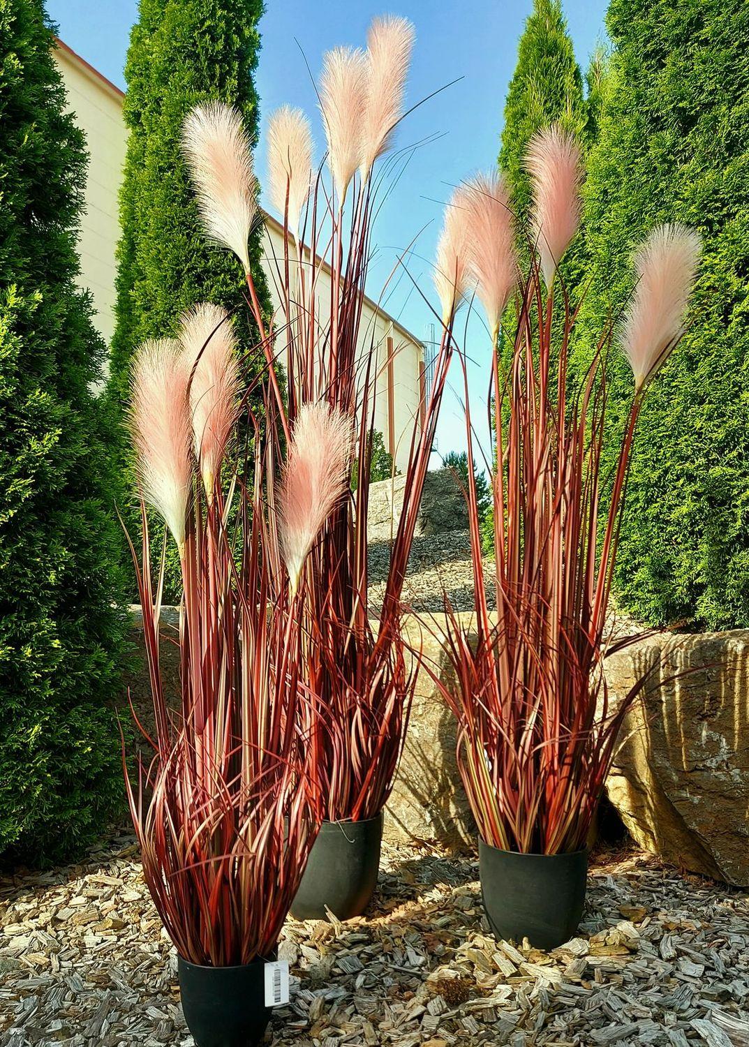 Herbe de la Pampa en plastique WERNHILD avec des panicules, en pot décoratif, rouge-brun, 150cm