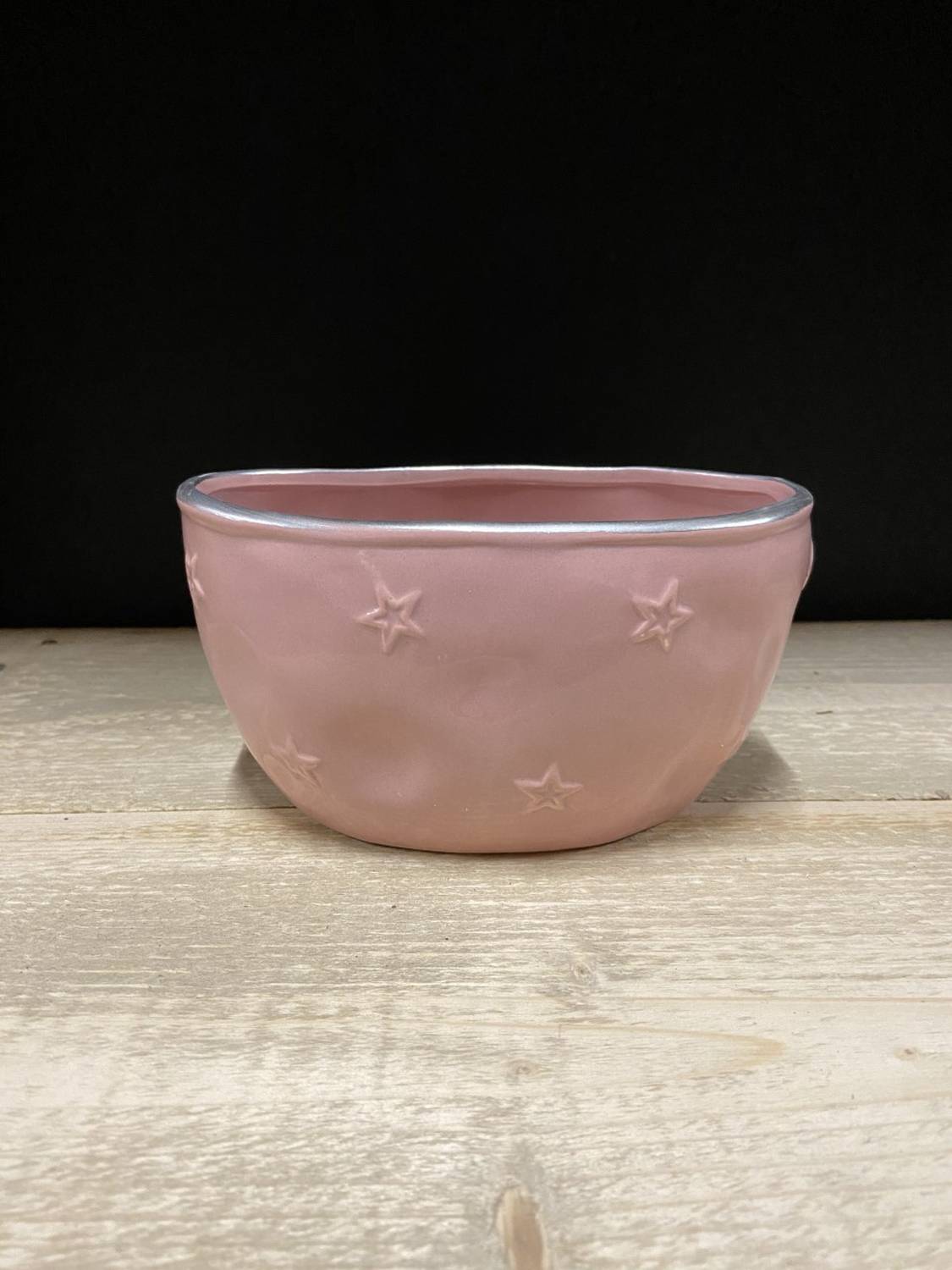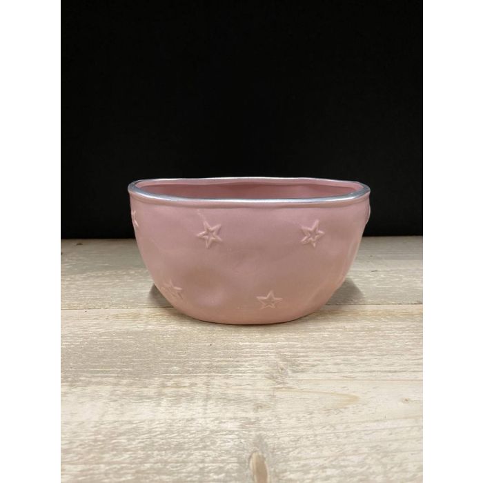 Jardinière ovale en céramique CONSTANZA, motif étoile, rose, 18x10,5x9,5cm