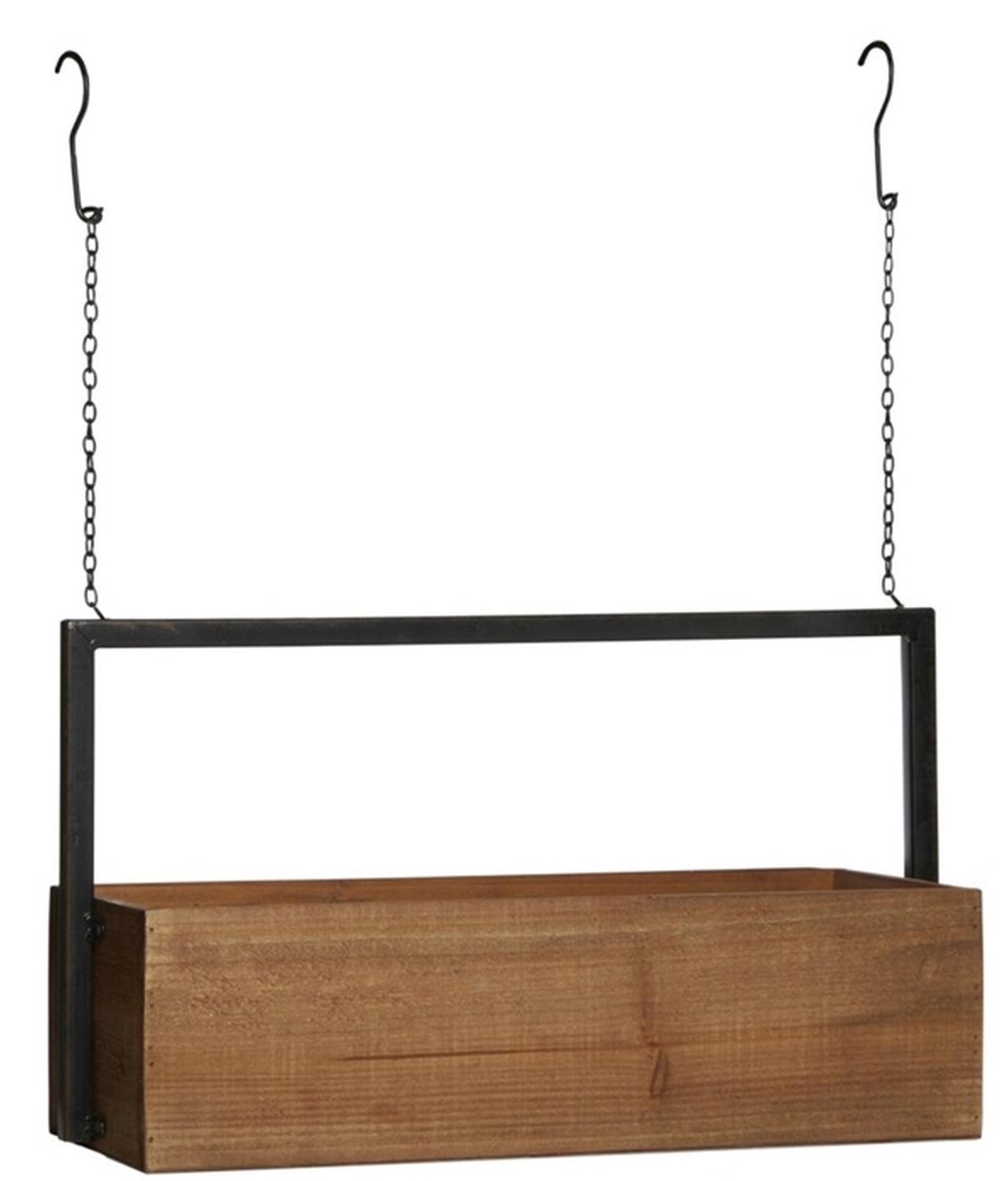 Jardinière suspendue en bois AILSA avec anse en métal, brun, 58,5x16x48,5cm