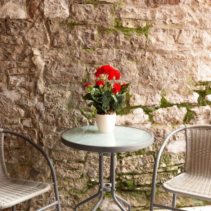 Un rouge vif ! Les géraniums ne passent jamais de mode. En été, ils embellissent souvent les balustrades des balcons avec leurs couleurs vives. Notre géranium rouge flamboyant donne l'impression d'être réel. Il faut donc faire attention à ne pas l'arroser par mégarde, car les granulés pour plantes, qui conviennent également aux vraies plantes, y invitent littéralement. Shop the Look!