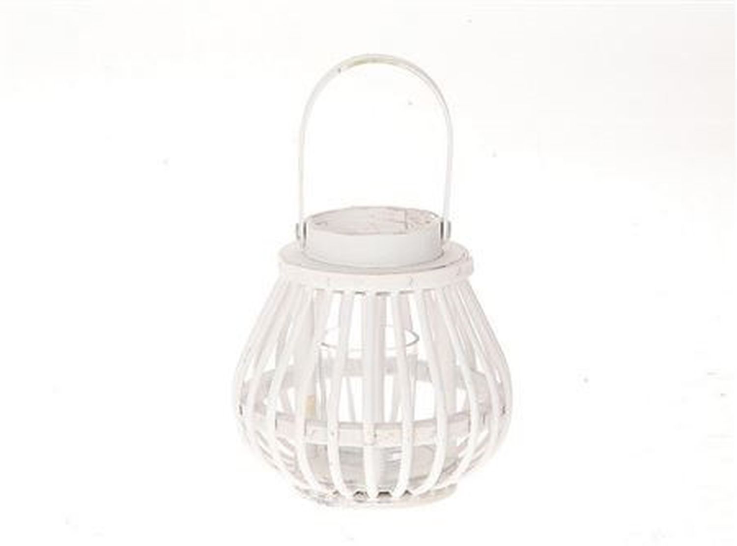 Lanterne en bois CHARITHRA avec anse, insert en verre, blanc, 15cm, Ø15,5cm