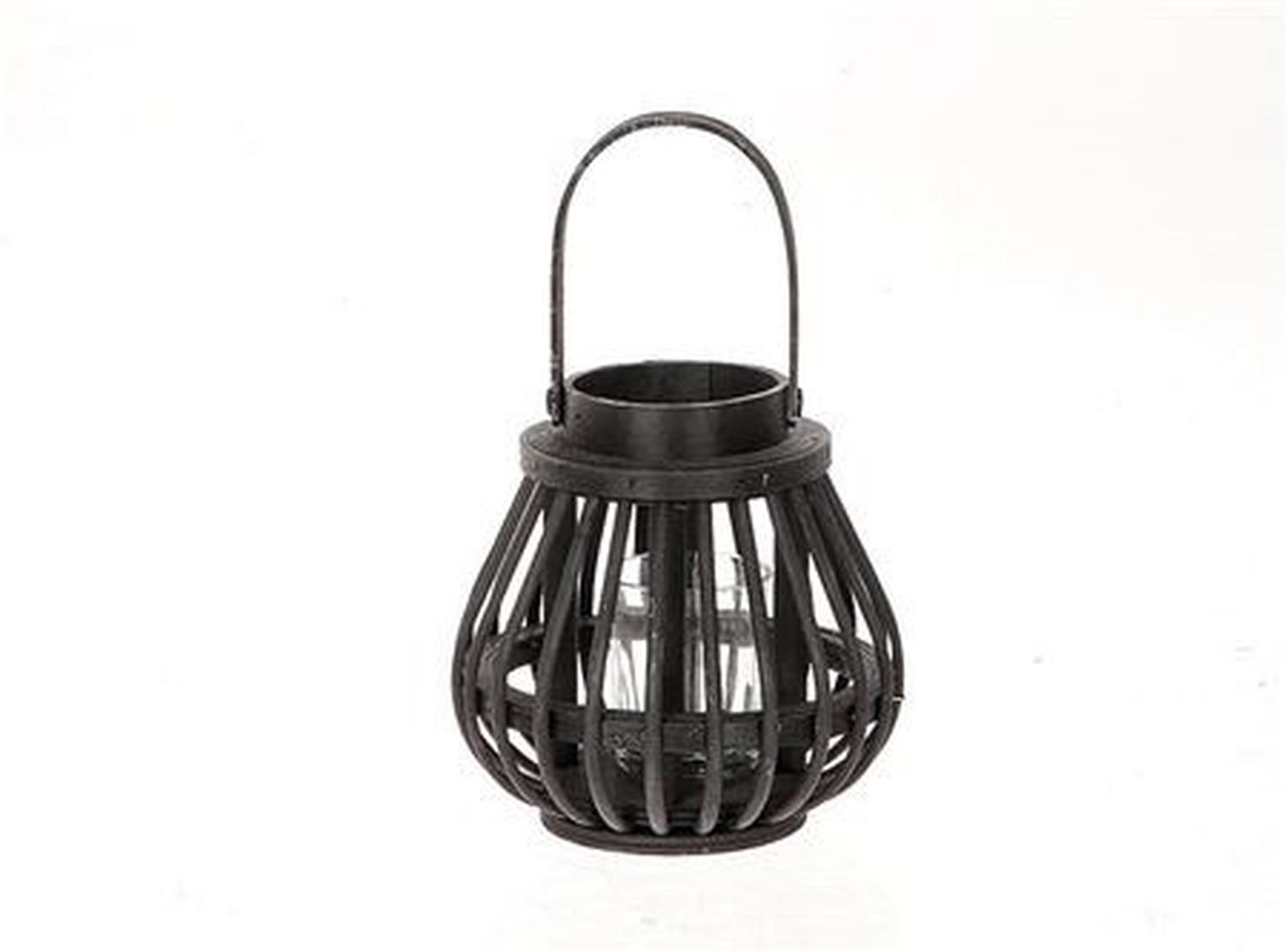 Lanterne en bois CHARITHRA avec anse, insert en verre, noir, 15cm, Ø15,5cm