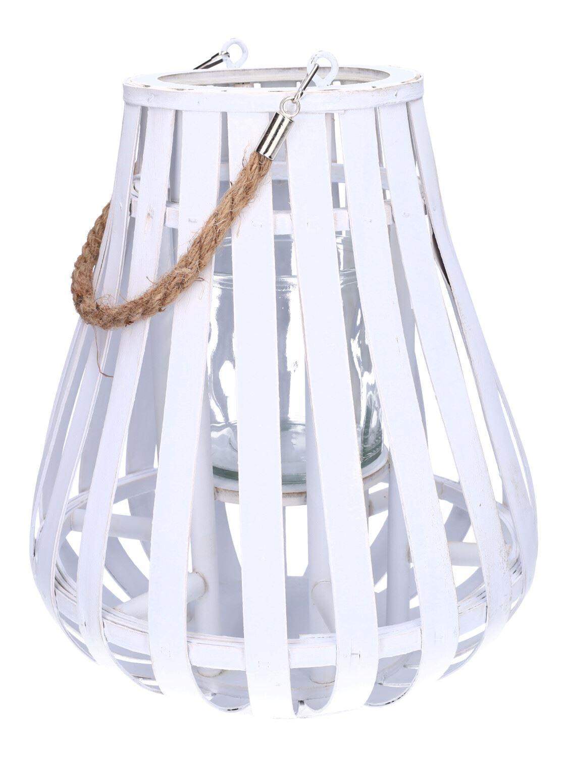 Lanterne en rotin ALVARU avec verre à bougie, anse, blanc, 31cm, Ø24cm