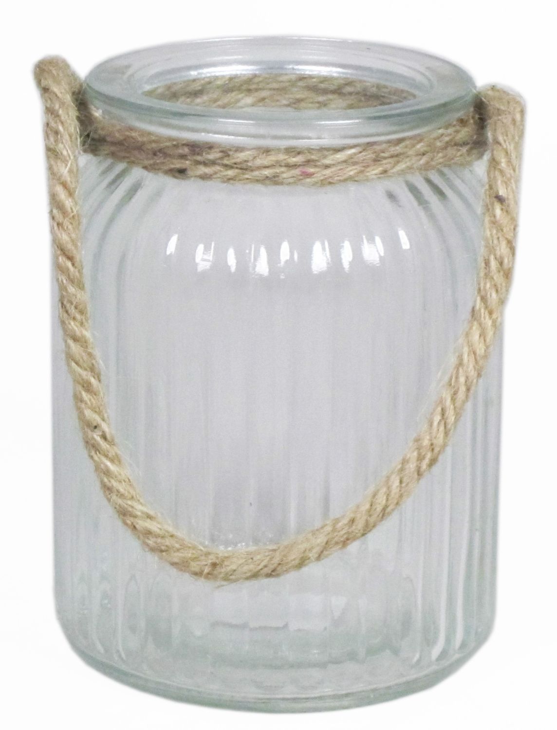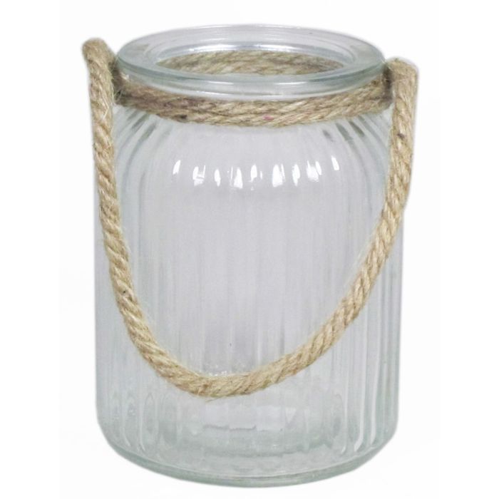Lanterne en verre ADANNA avec anse, rayures verticales, transparent, 14,5cm, Ø11cm