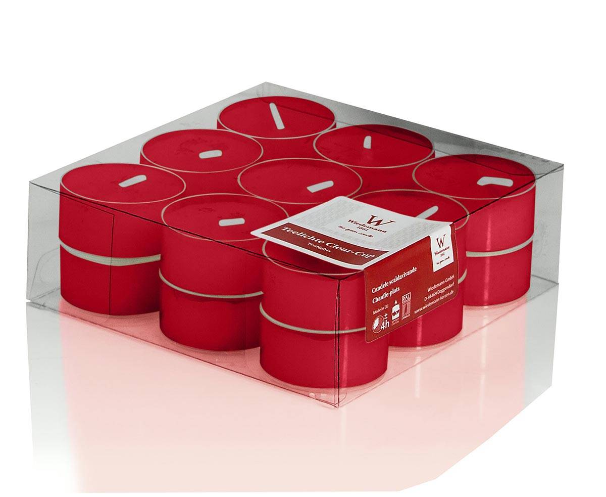 Lot de 18 bougies chauffe-plat / bougie de table KENNY, rouge rubis, 1,8cm, Ø3,8cm, 4h