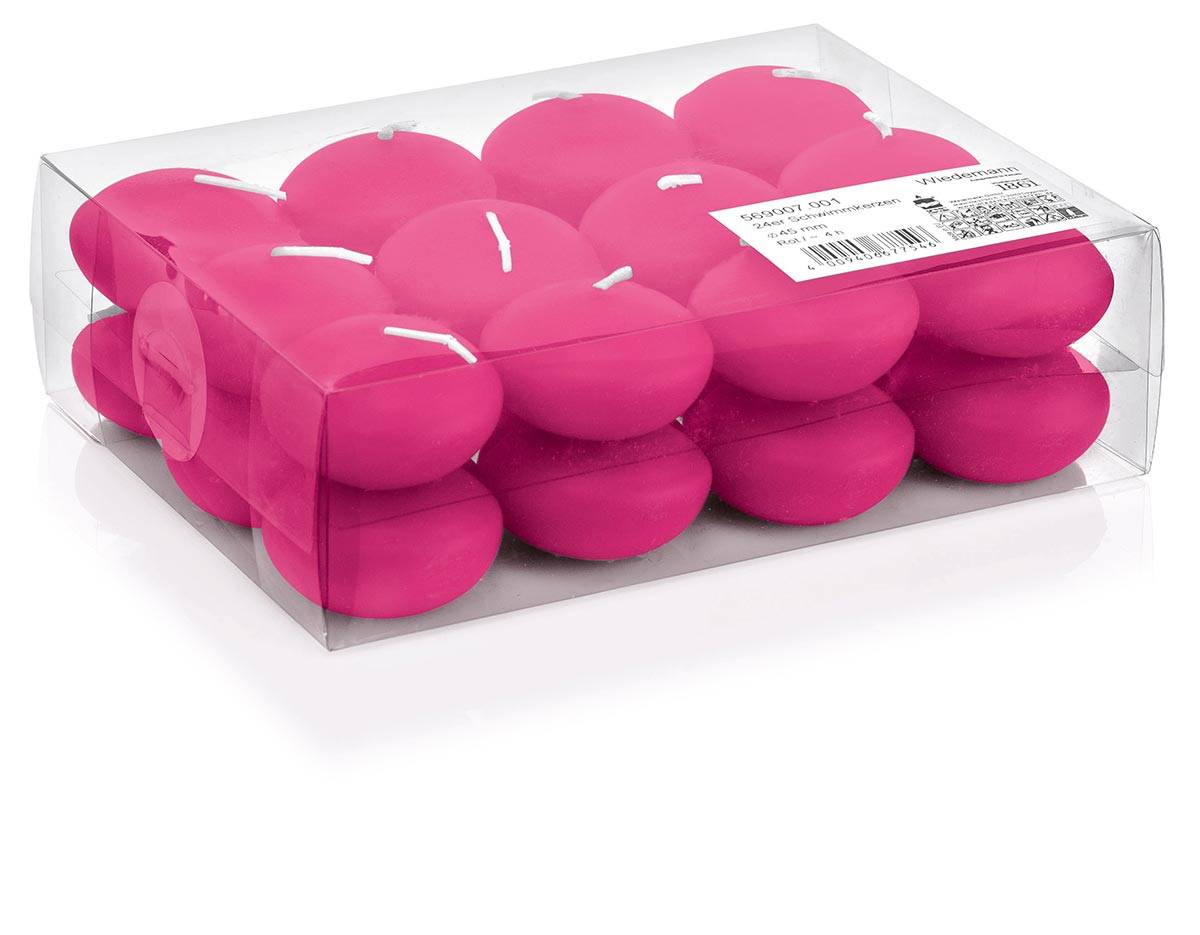Lot de 24 bougies flottantes / bougies chauffe-plat ORNELLA, rose fuchsia, 2,8cm, Ø4,5cm, 4h