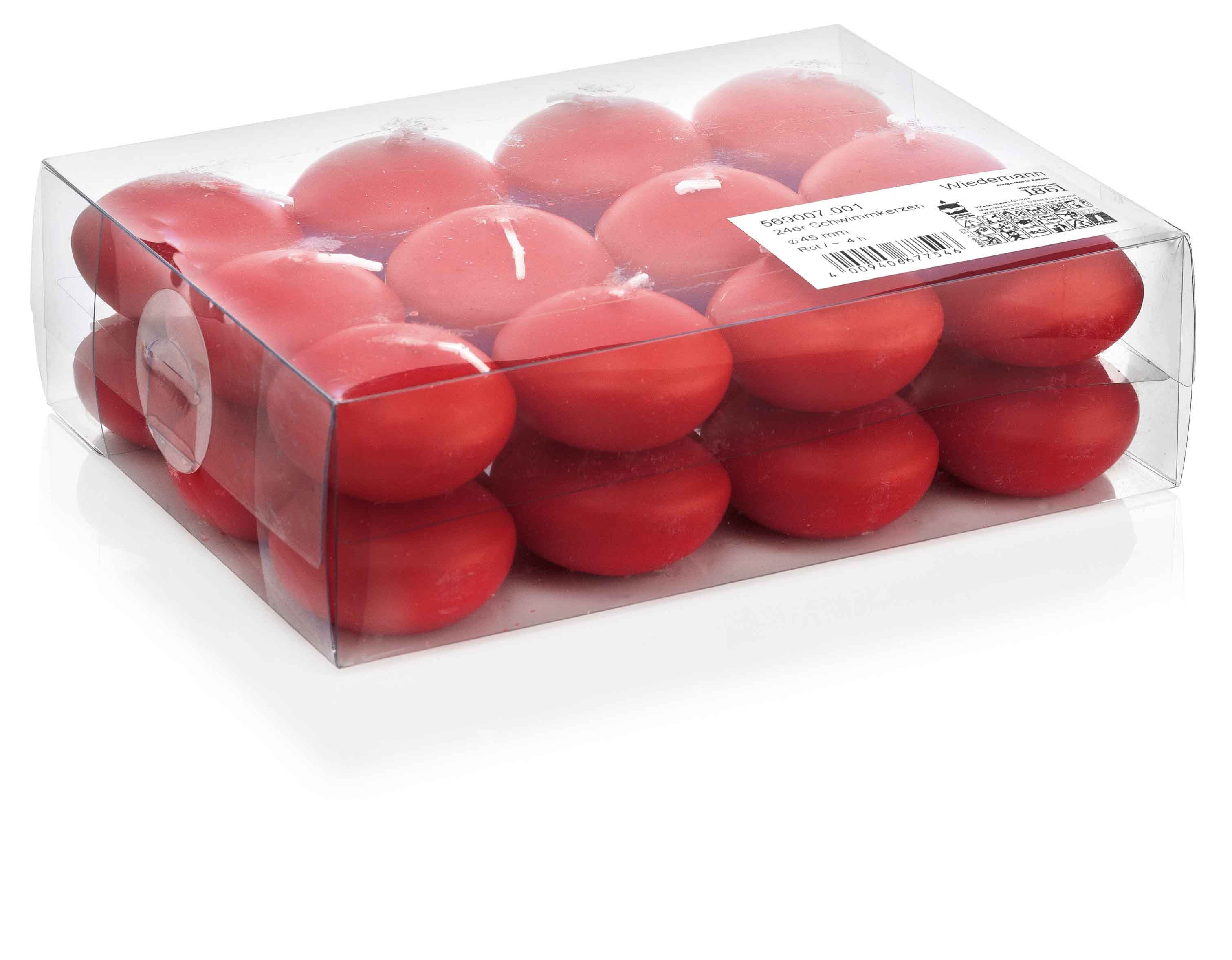Lot de 24 bougies flottantes / bougies chauffe-plat ORNELLA, rouge, 2,8cm, Ø4,5cm, 4h