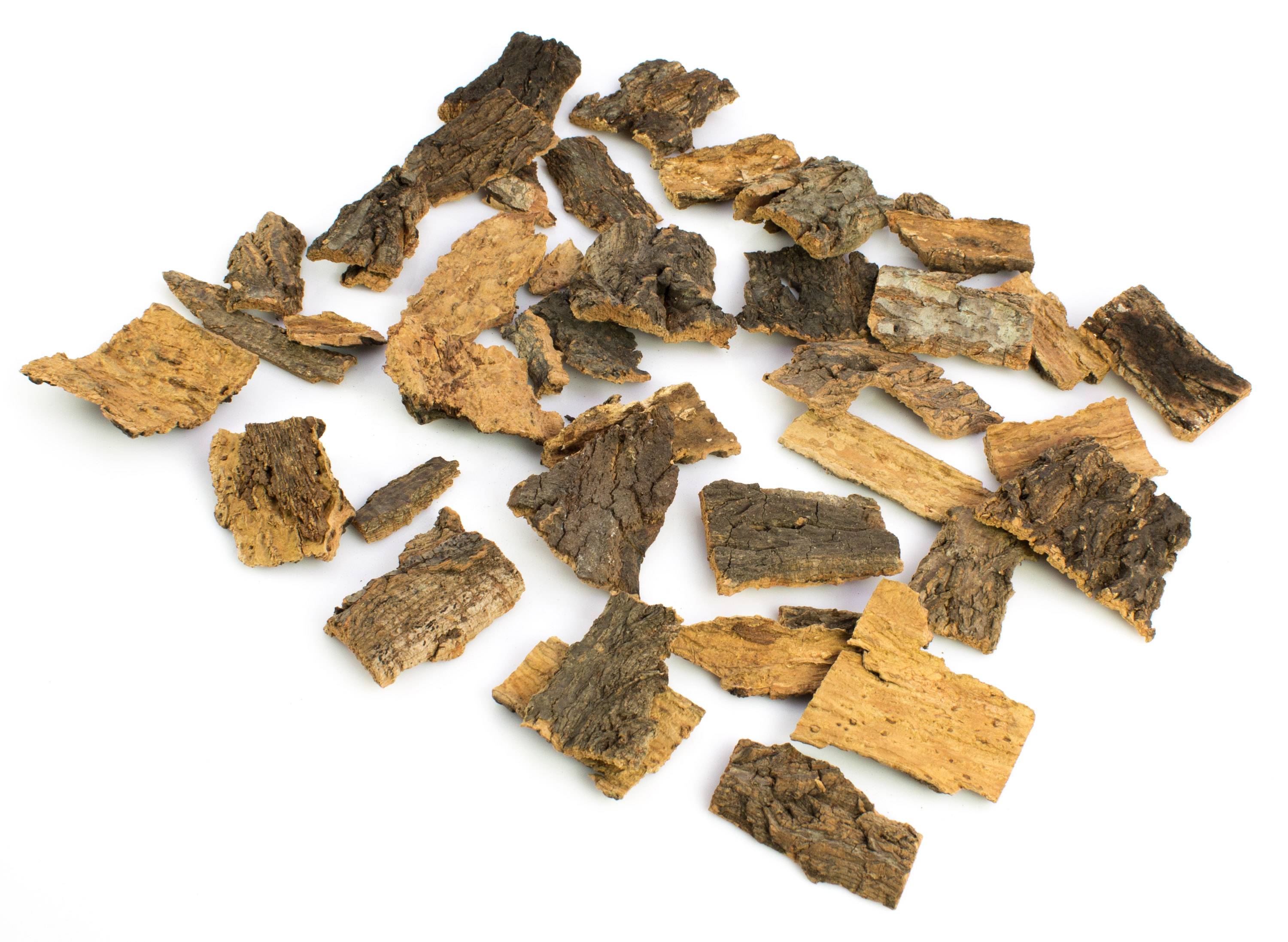 - Ecorces coupées de dimensions différentes allant d'environ 2 x 3 cm à 5 x 6 cm