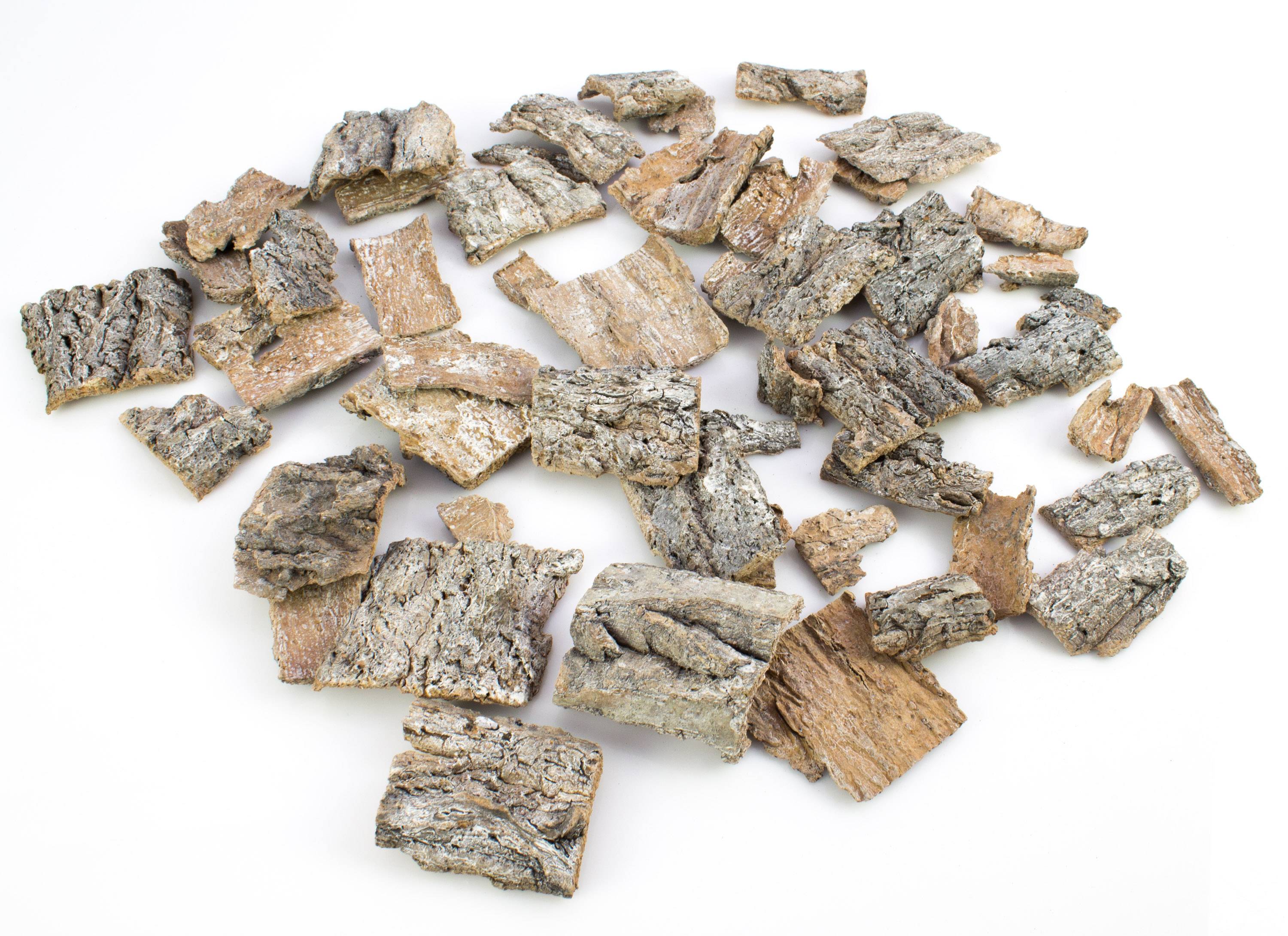 - Ecorces coupées de dimensions différentes allant d'environ 1 x 1 cm à 6 x 7 cm