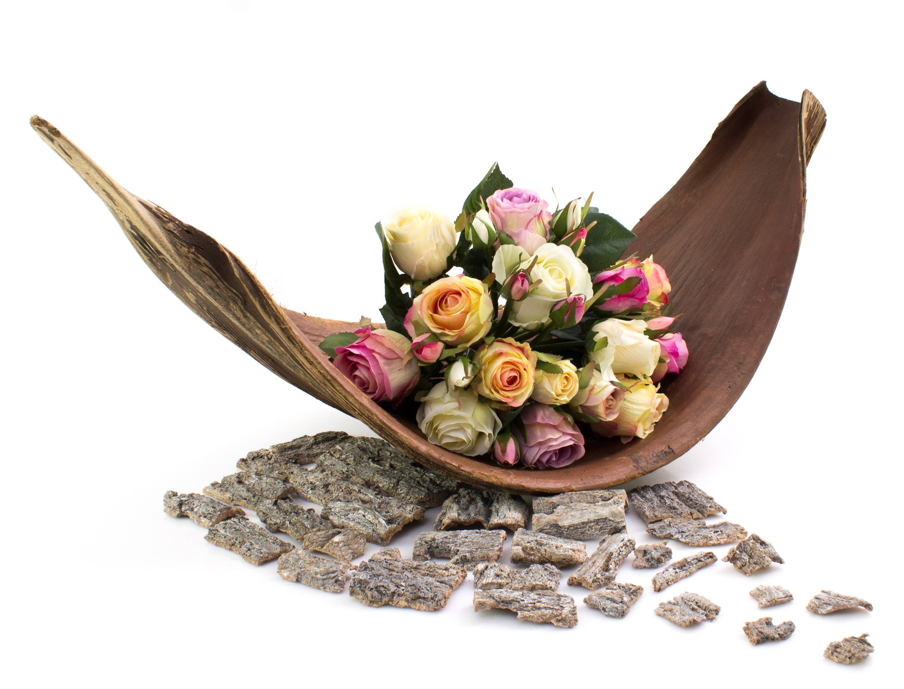 Morceaux d'écorce d'arbre séché de dimensions diverses allant d'environ 1 x 1 cm à 6 x 7 cm. Ces plaques blanche-beige légèrement blanchies donnent un effet très épuré à votre décoration.