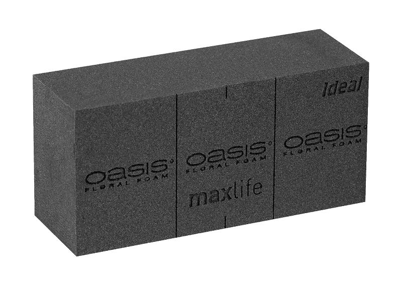 OASIS® Black Ideal Maxlife Mousse à piquer humide Brique avec des lignes de découpe, noir, 23x11x7,5cm