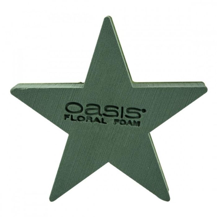 OASIS® Mousse à piquer humide Étoile , support en bois Bioline, vert, 25x25x4,5cm