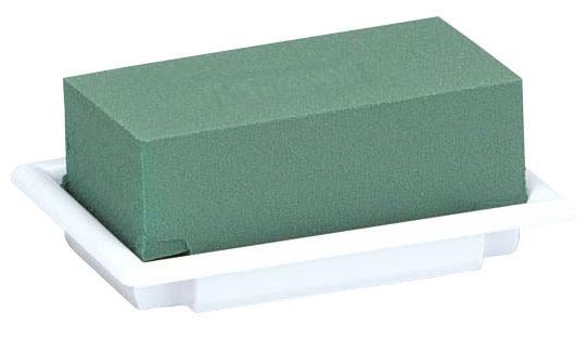 OASIS® Mousse à piquer humide rectangulaire pour des compositions florales, dans une coupe en papier composite, blanc-vert, 13x9x5cm