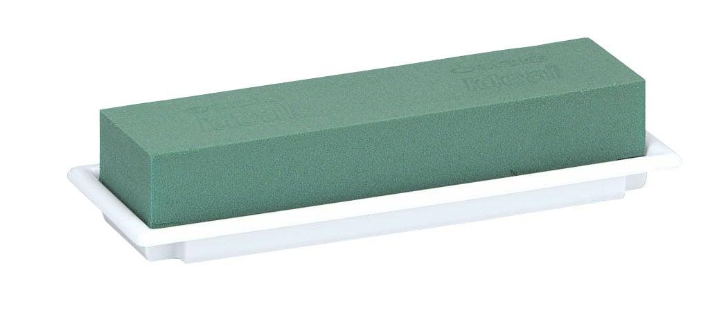 OASIS® Mousse à piquer humide rectangulaire pour des compositions florales, dans une coupe en papier composite, blanc-vert, 25x9x5cm