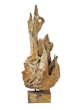 Objet de racine décoratif en véritable bois de teck sur socle. Avec une hauteur de 150 cm.