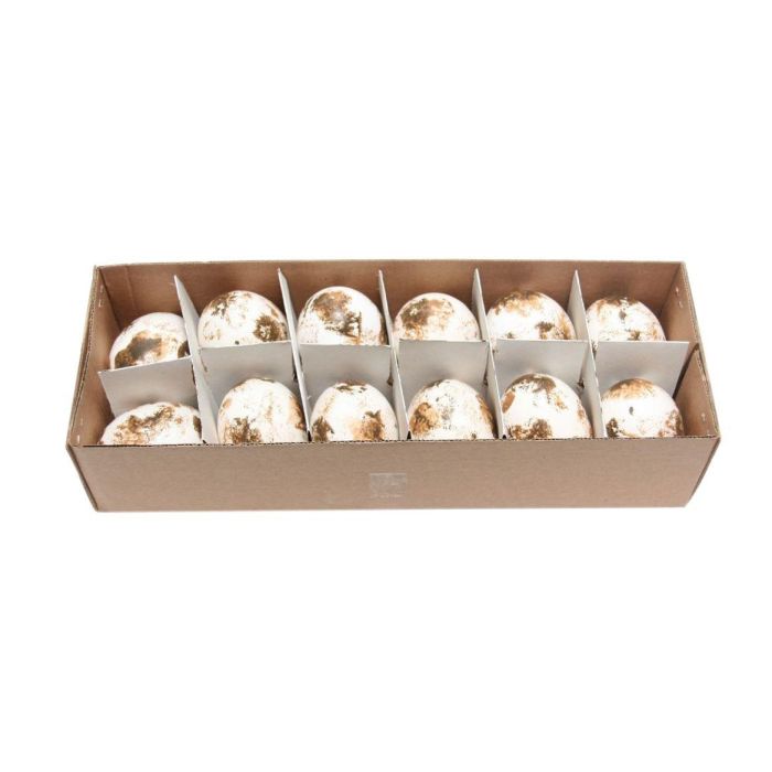 Œufs de poule décoratifs KIKU, 12 pièces, décoration de Pâques, tacheté, blanc