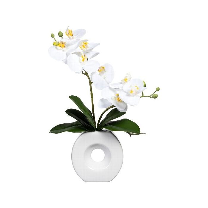 Orchidée Phalaenopsis décorative DRELMOR, vase en céramique, racines, blanc, 35cm