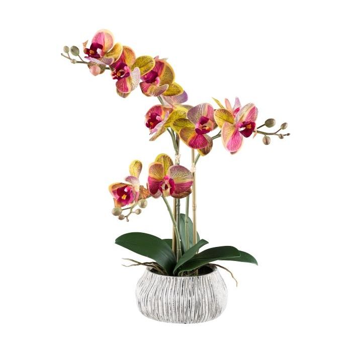 Orchidée Phalaenopsis en tissu BLORVEN, coupe en ciment, racines, jaune-rose fuchsia, 50cm