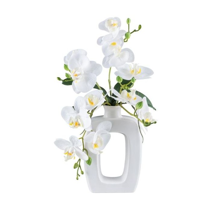Orchidée Phalaenopsis en tissu DRUKLON, vase en céramique, racines, blanc, 40cm