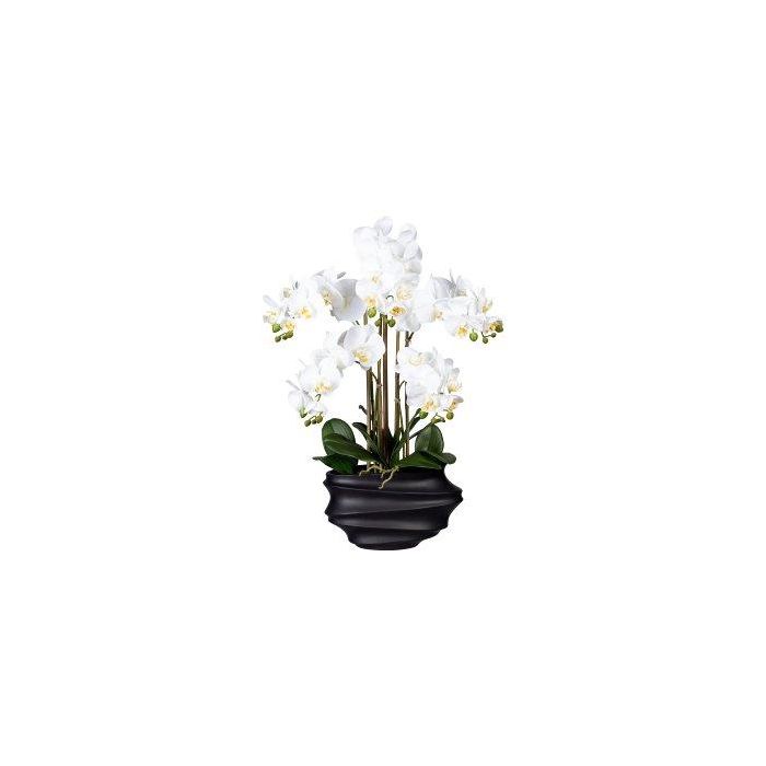 Orchidée Phalaenopsis en tissu ZALBROK, vase décoratif noir, racines, blanc, 75cm