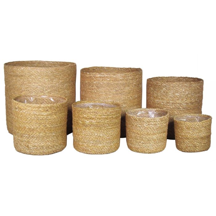 Panier de zostère tressée AMPARO, 7 pièces, beige, 12-30cm, Ø13-32cm