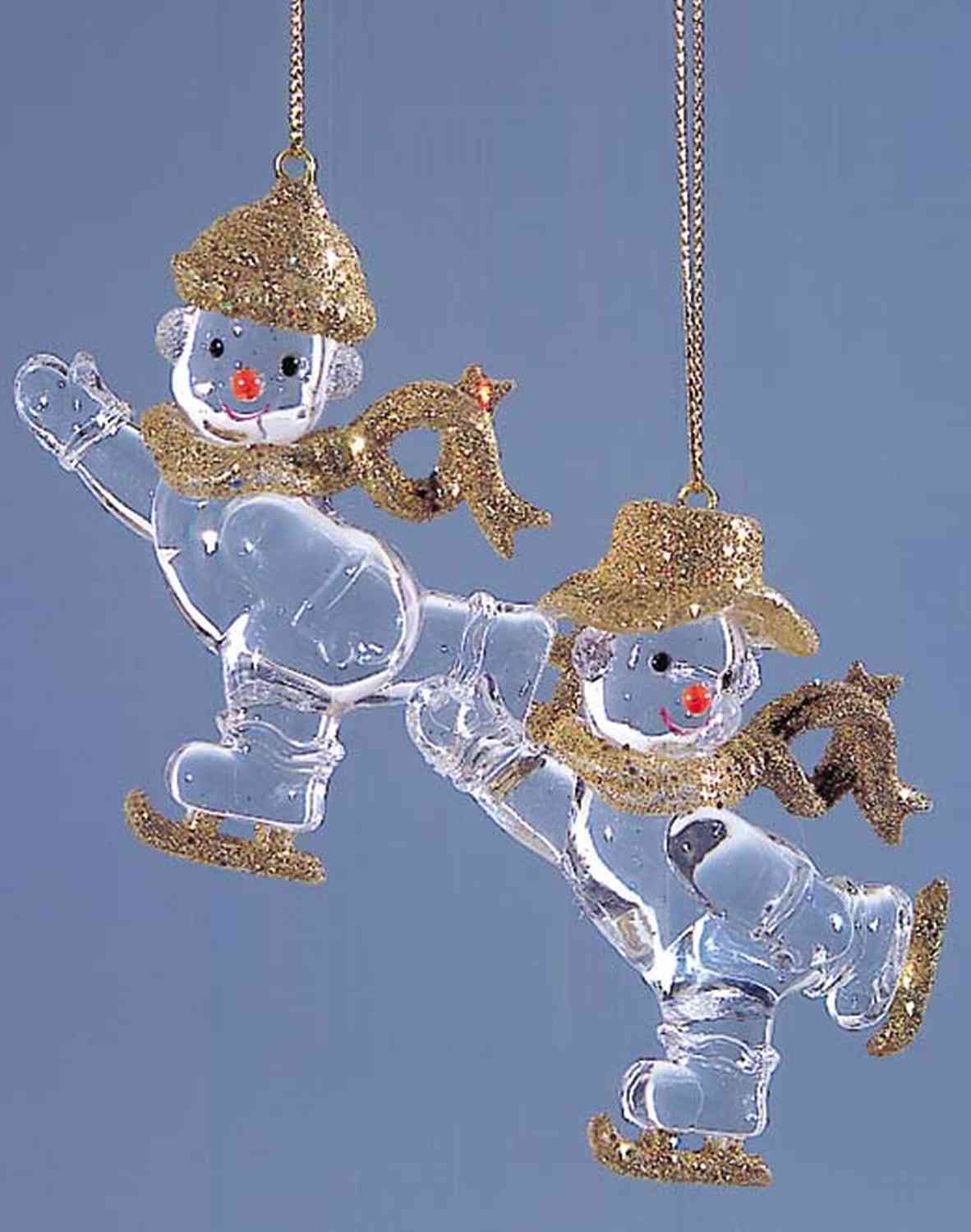 Pendentif acrylique Bonhomme de neige, 2 pièces, paillettes, or, 3x8cm