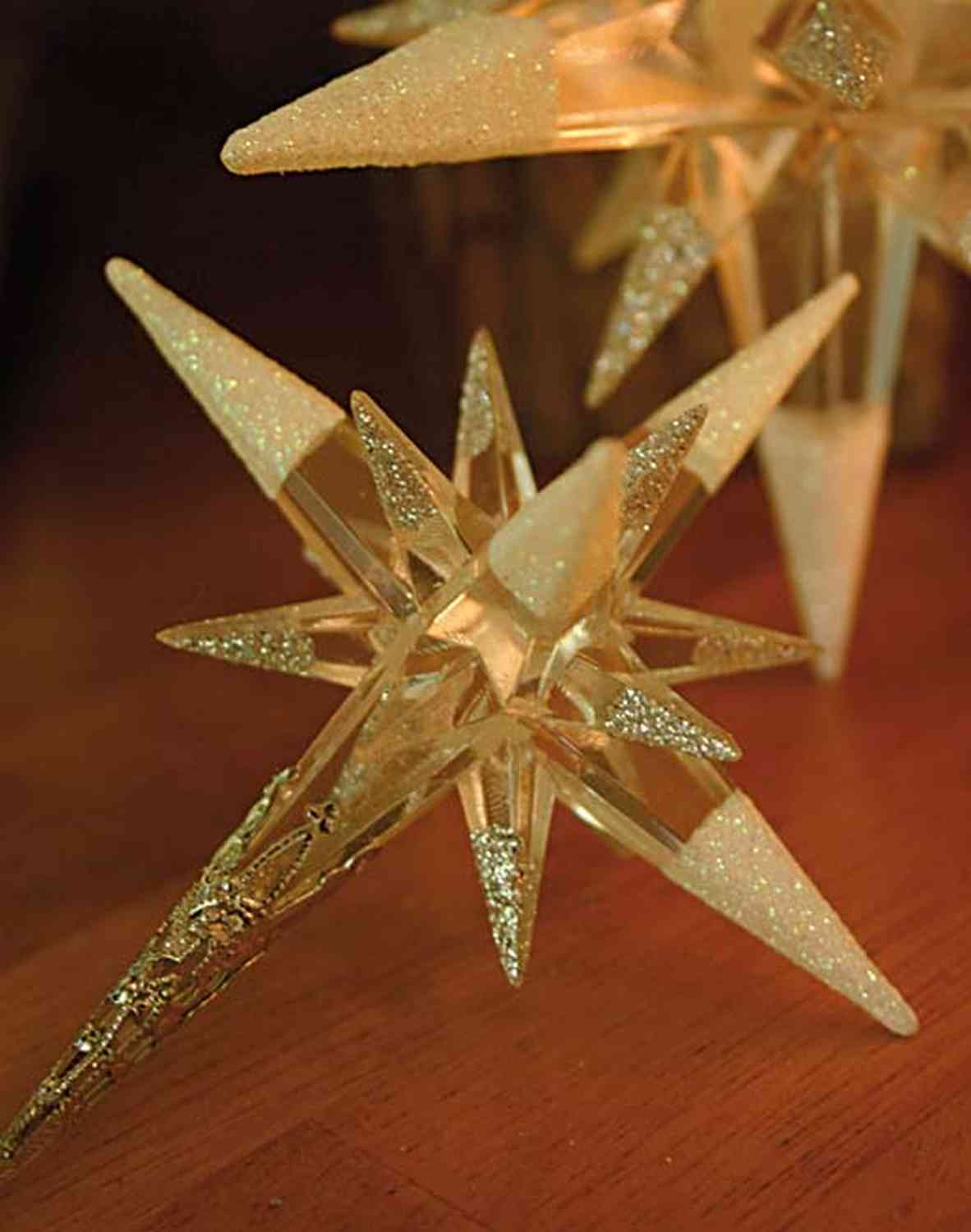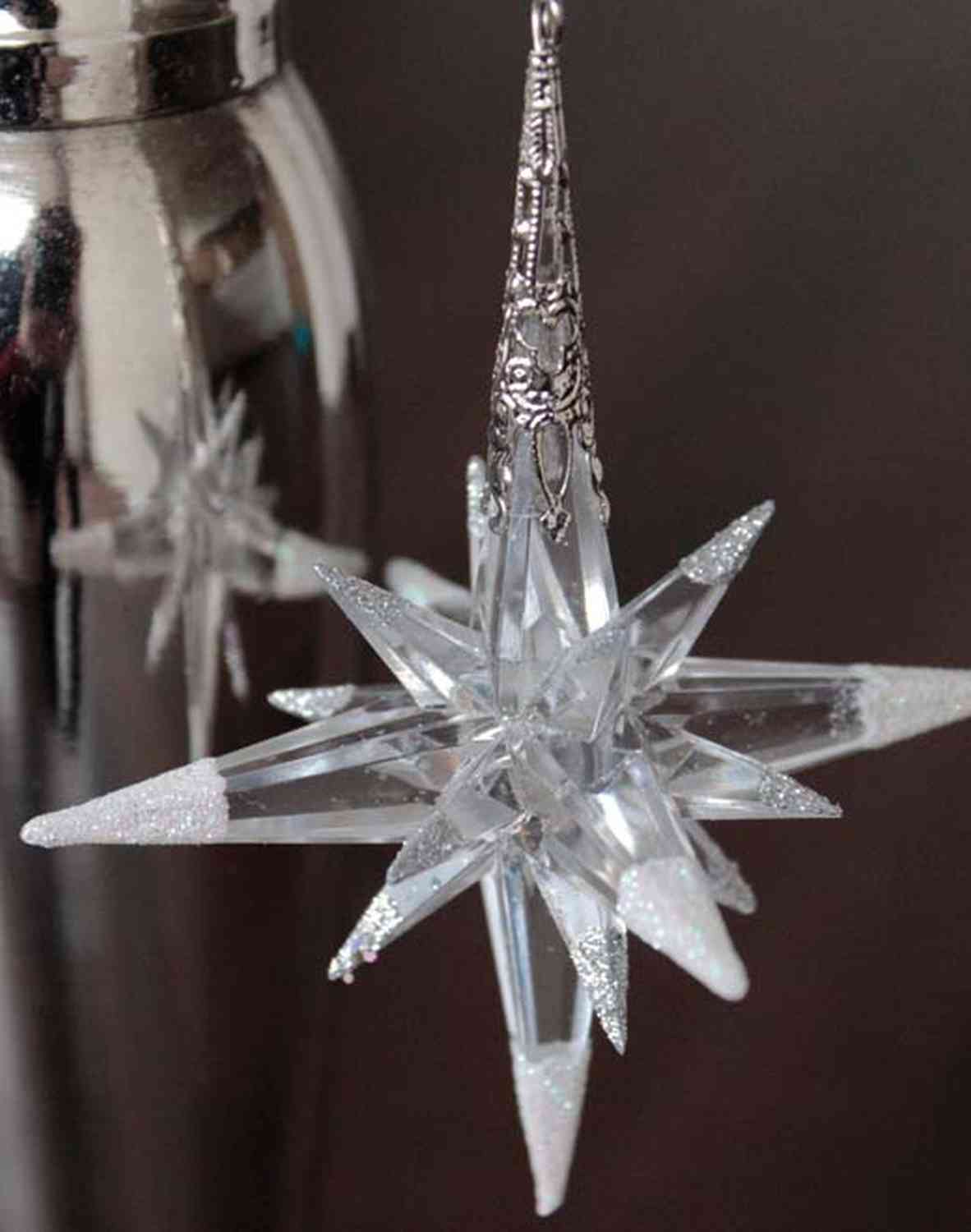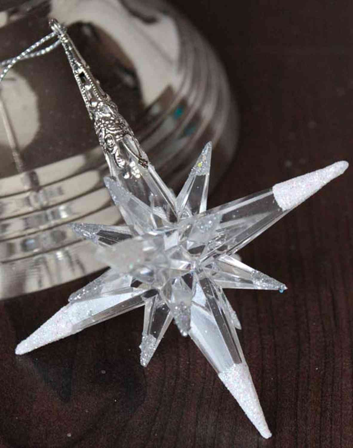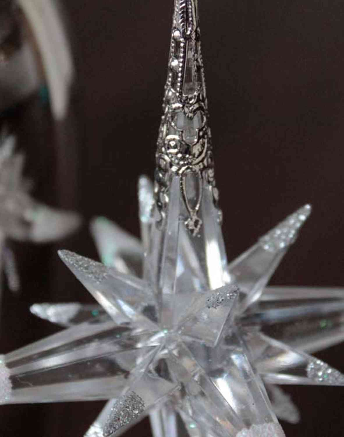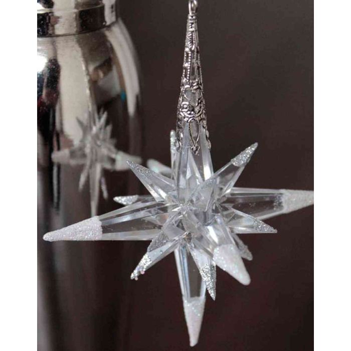 Pendentif acrylique Étoile MABOU, paillettes, argent-blanc, 10cm, Ø10cm