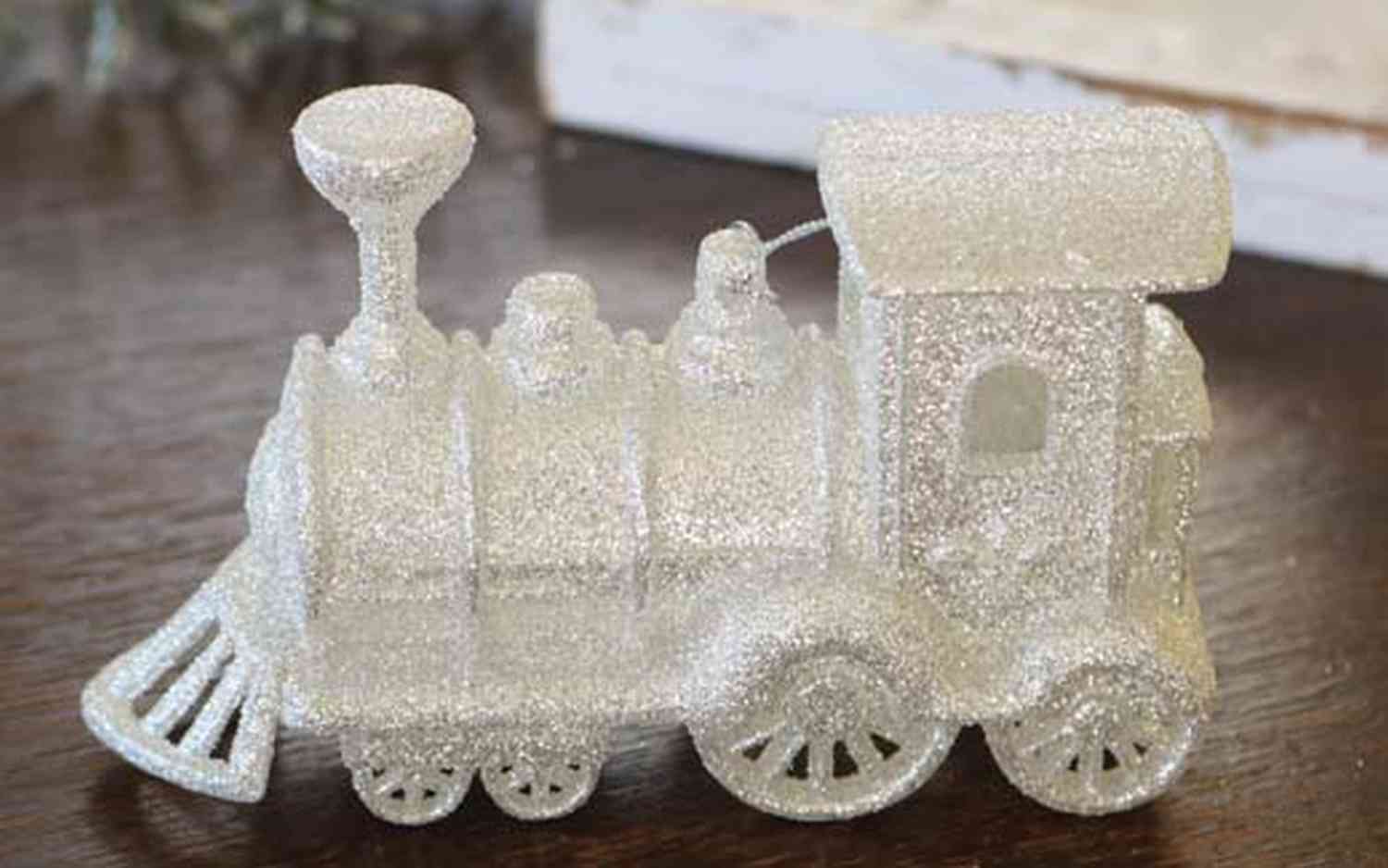 Pendentif acrylique locomotive GEREON, paillettes, blanc-argent, 12x7cm