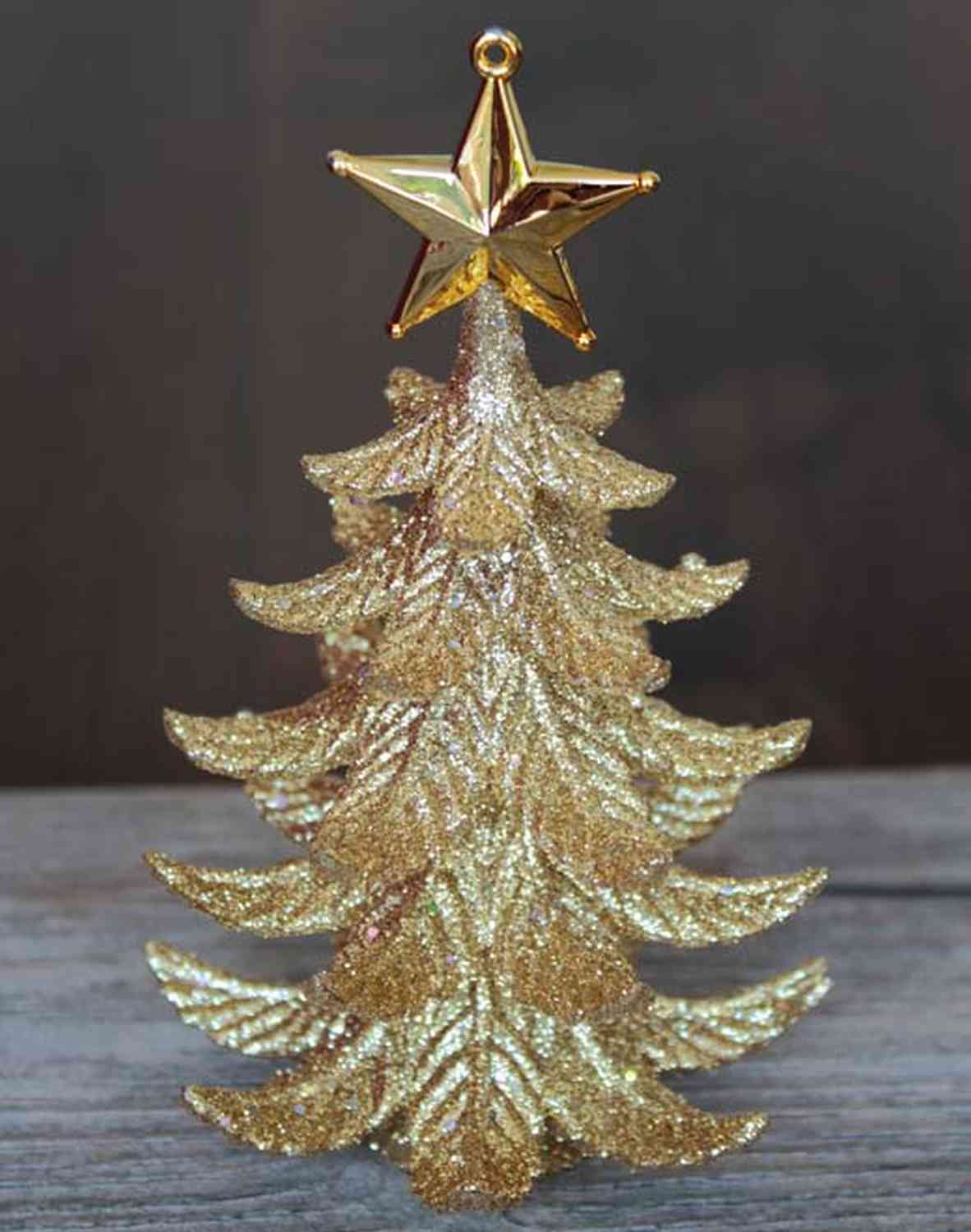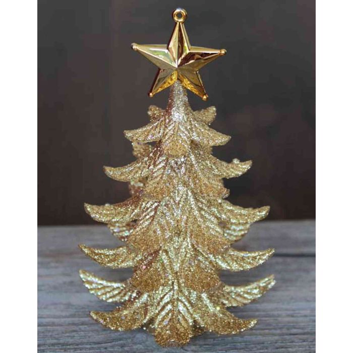 Pendentif acrylique Petit sapin avec étoile, paillettes, or, 12cm, Ø9cm