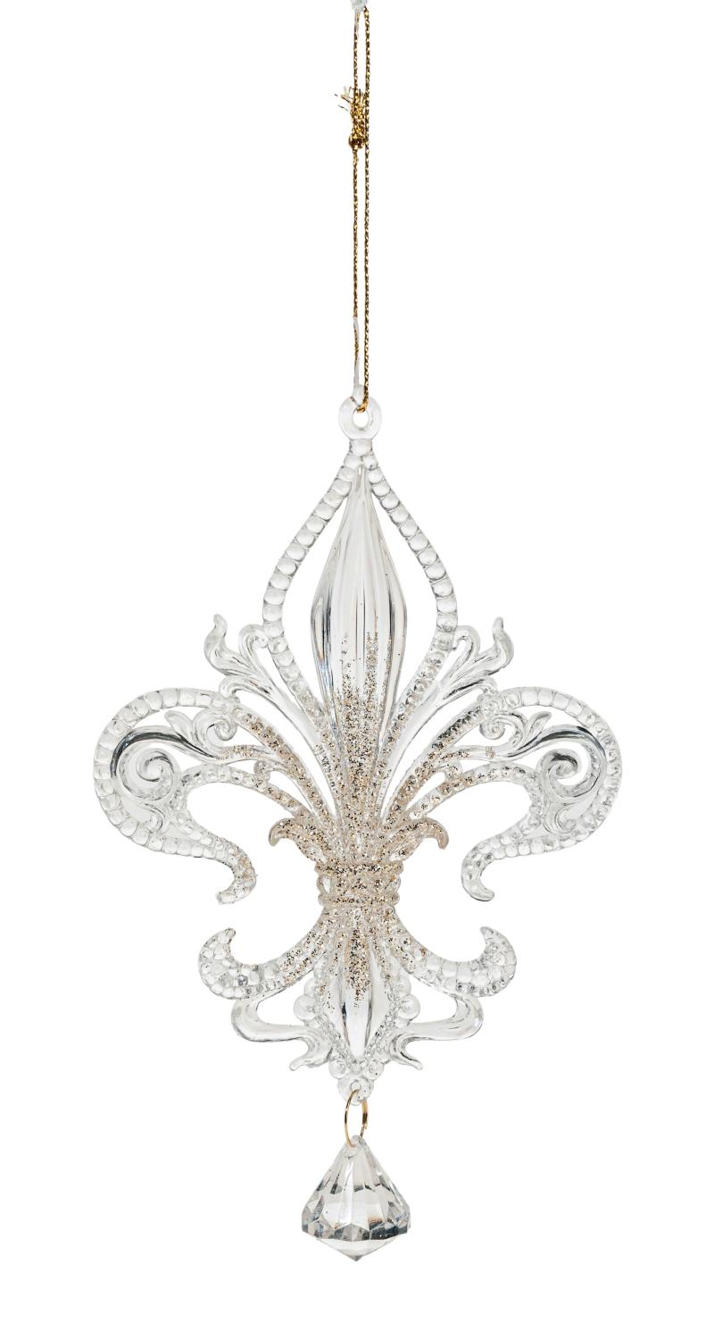 Pendentif décoratif Lys héraldique AZARIEL en acrylique, paillettes, transparent-or, 15cm