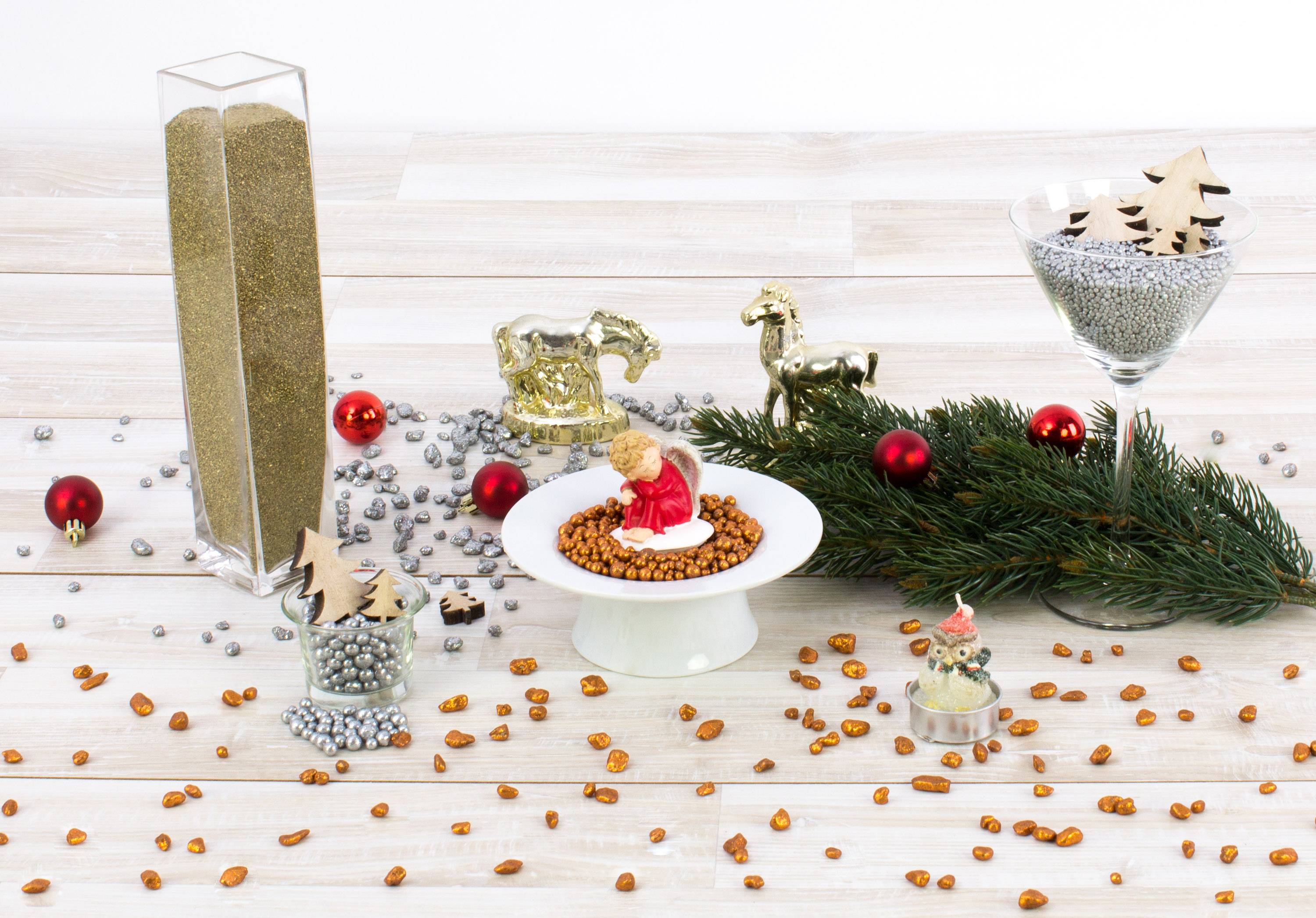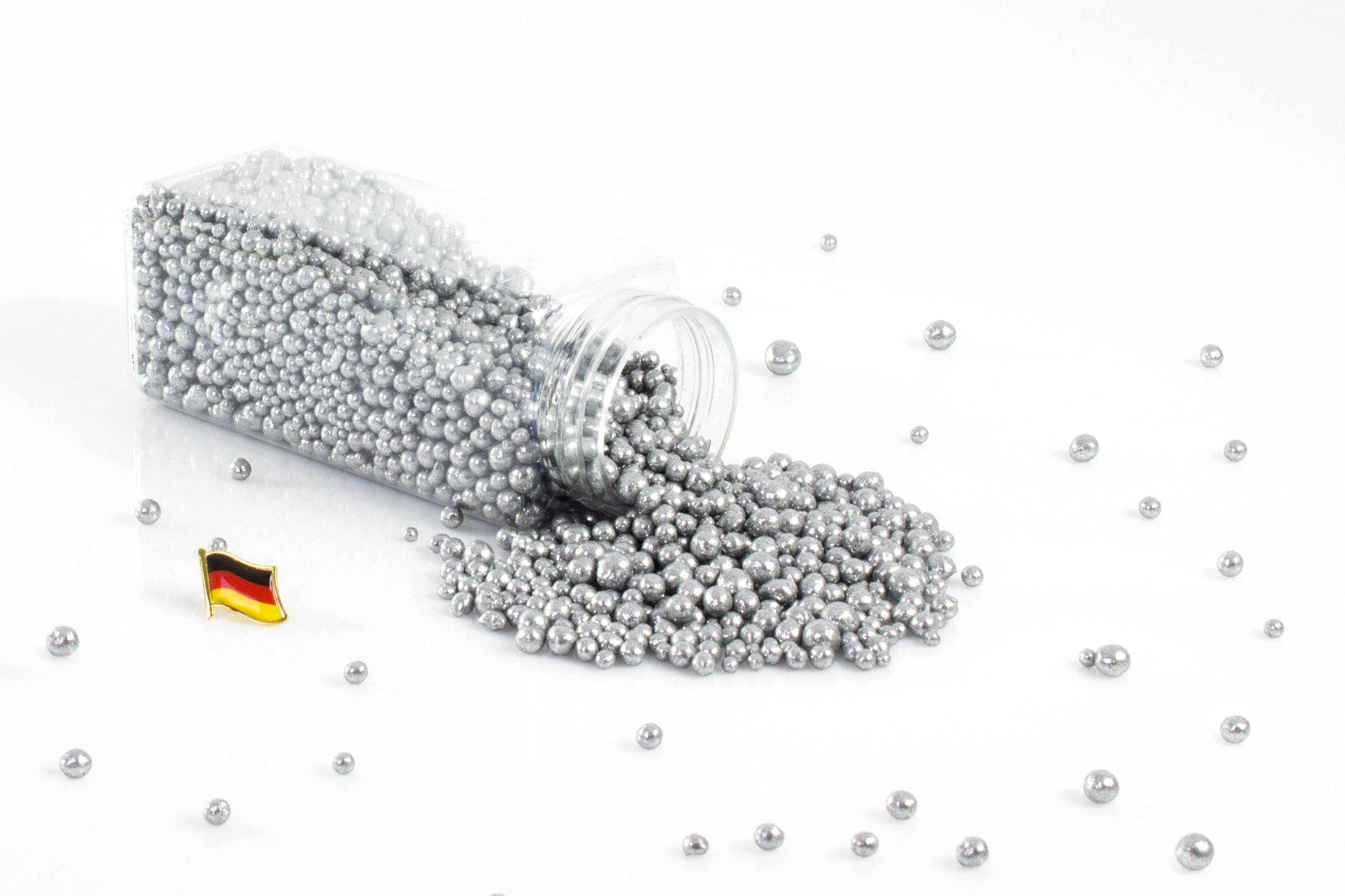 Perles décoratives / billes d'argile PERLA, argent scintillant, 2-8mm, bouteille de 605ml, fabriqué en Allemagne