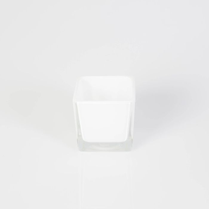 Petit photophore en verre KIM EARTH, blanc, 6x6x6cm