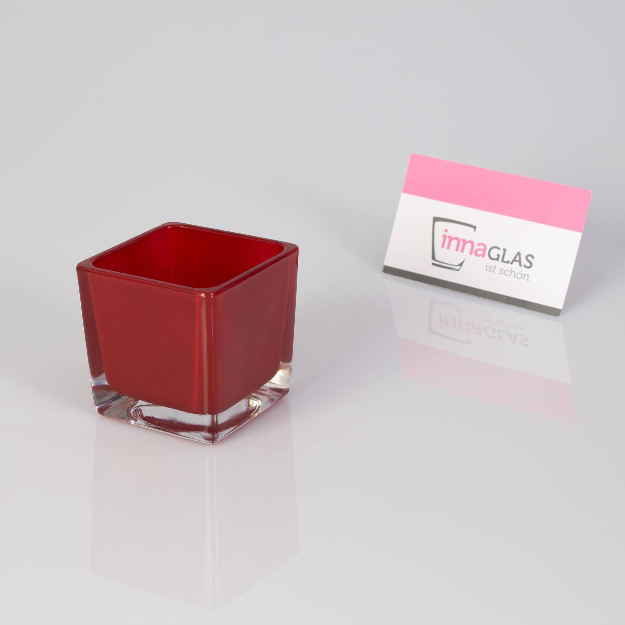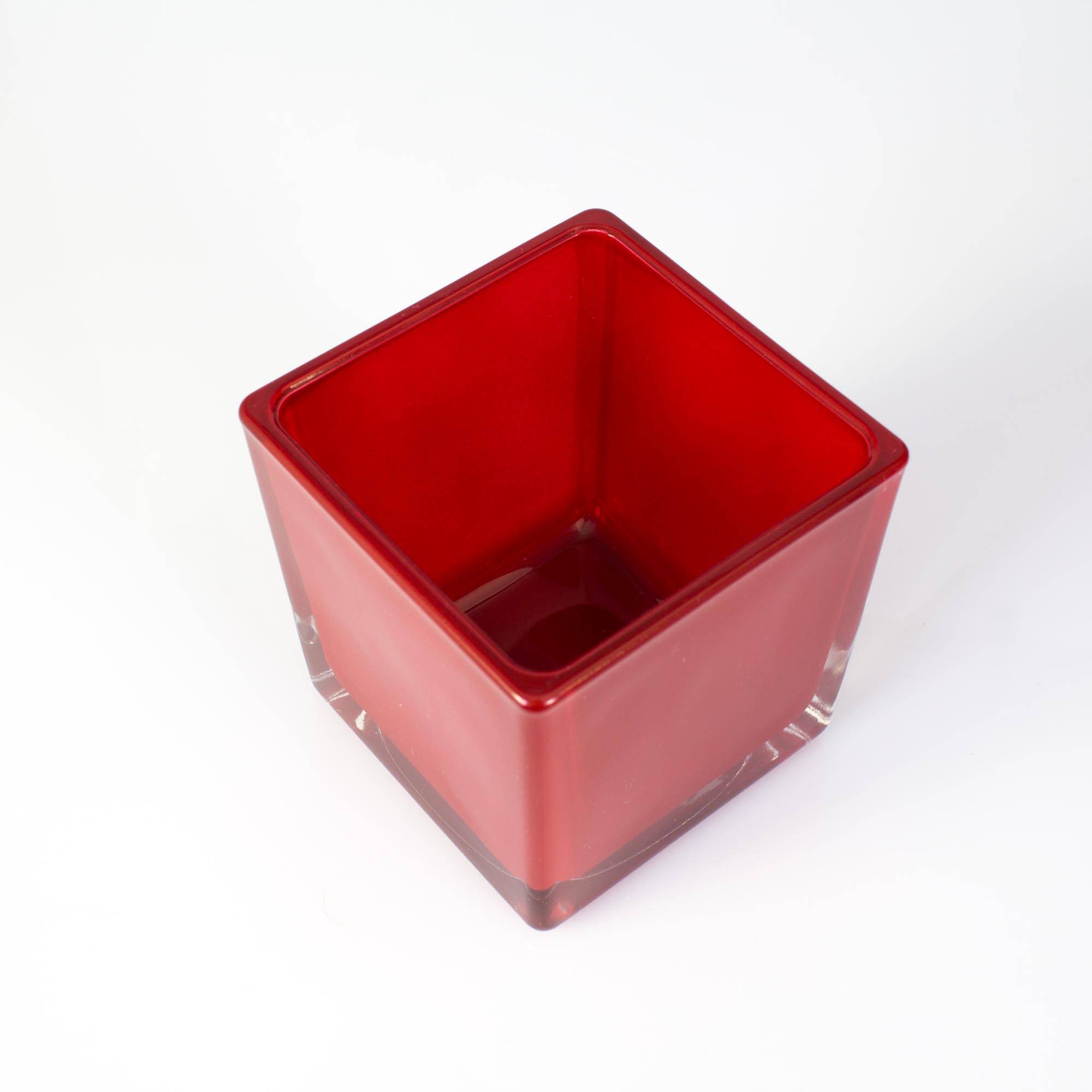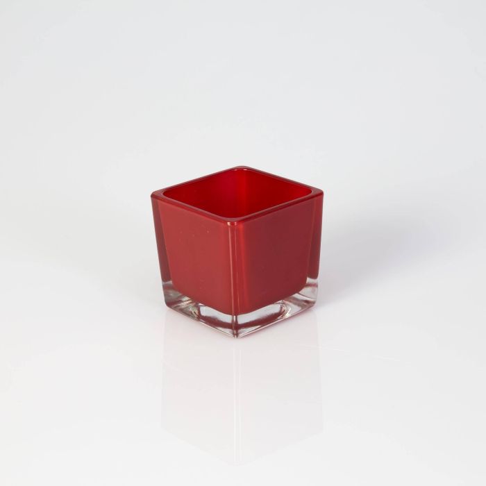 Petit photophore en verre KIM EARTH, rouge, 6x6x6cm
