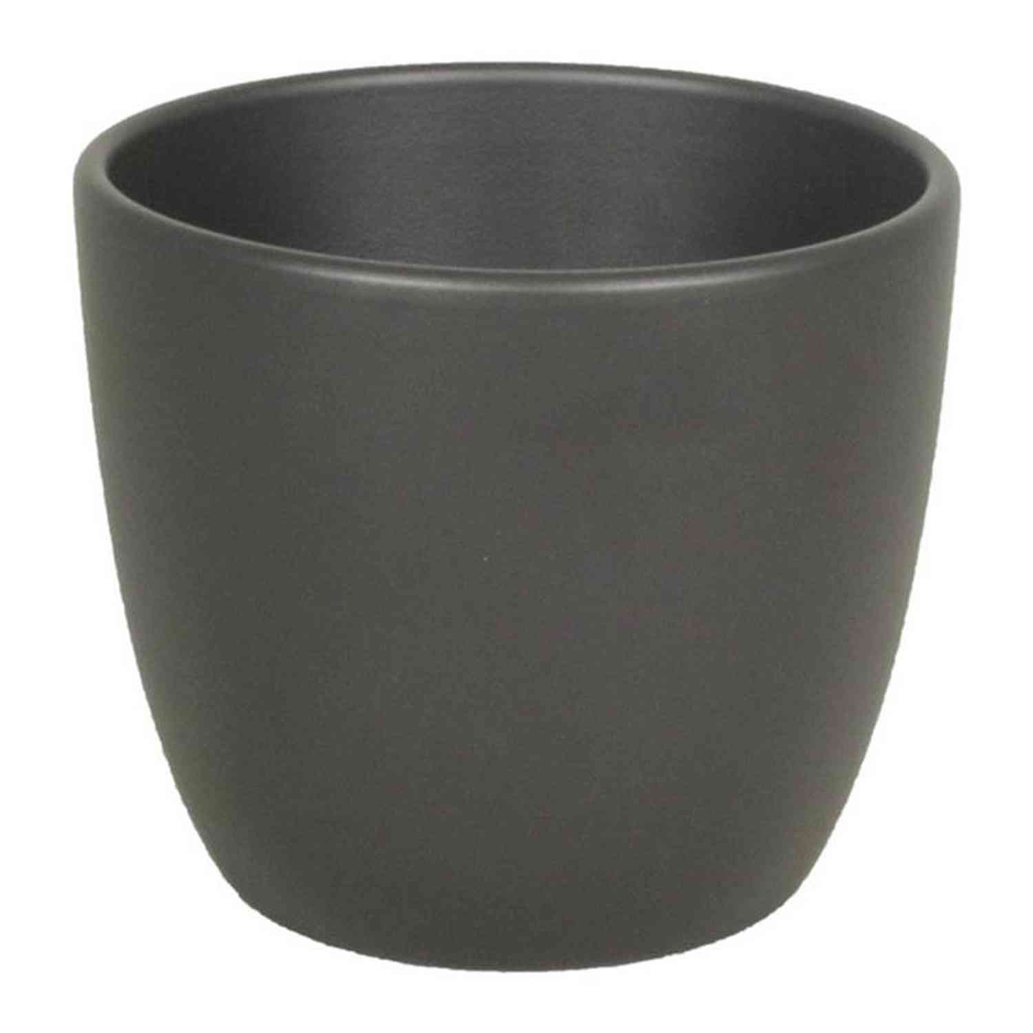 Cache-pot TEHERAN BASAR en céramique de couleur anthracite avec un diamètre d'environ 7,5 cm et une hauteur d'environ 6 cm.