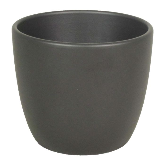 Cache-pot TEHERAN BASAR en céramique de couleur anthracite avec un diamètre d'environ 10,5 cm et une hauteur d'environ 8,5 cm.