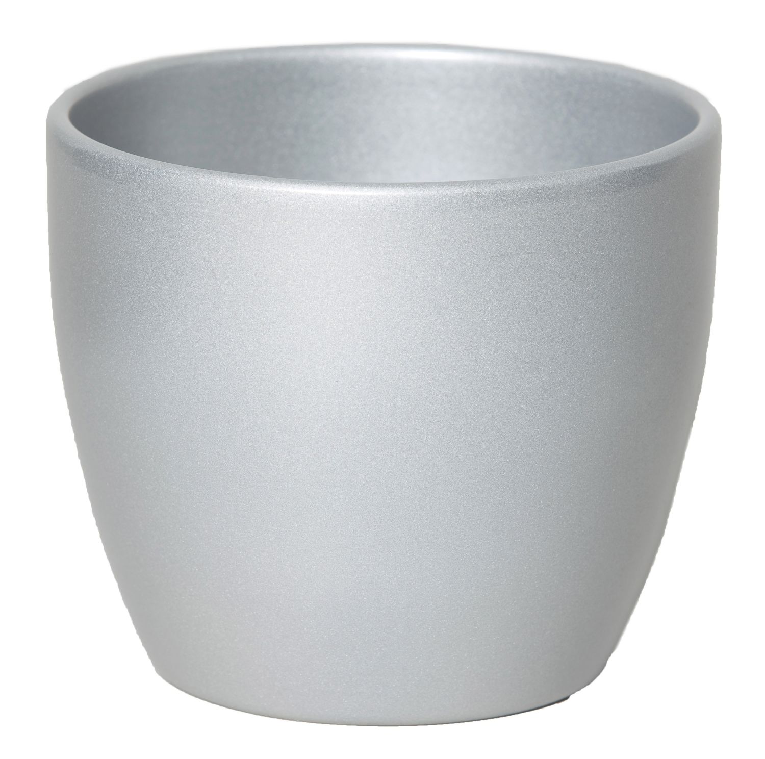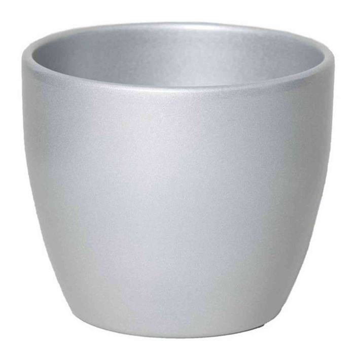 Cache-pot TEHERAN BASAR en céramique de couleur argentée avec un diamètre d'environ 7,5 cm et une hauteur d'environ 6 cm.