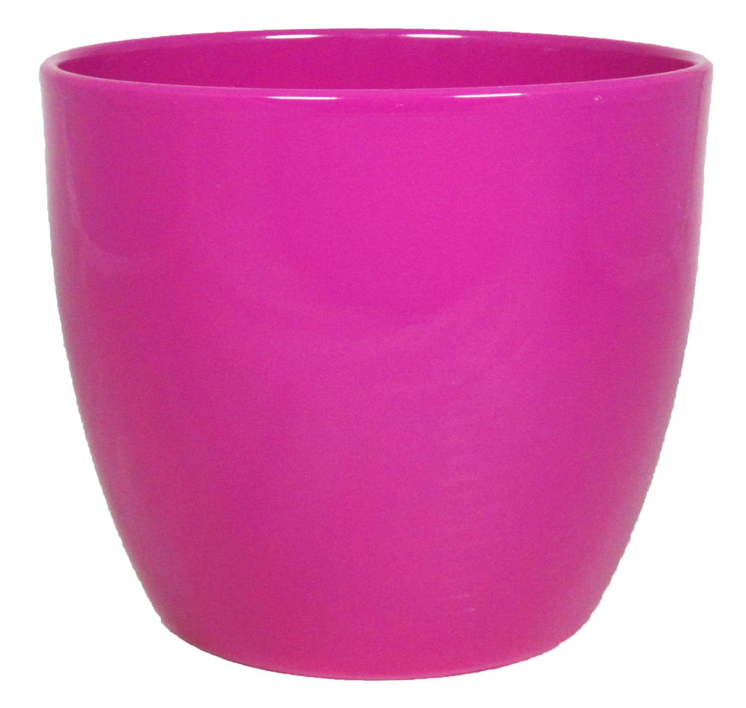 Cache-pot TEHERAN BASAR en céramique de couleur rose fuchsia avec un diamètre d'environ 7,5 cm et une hauteur d'environ 6 cm.