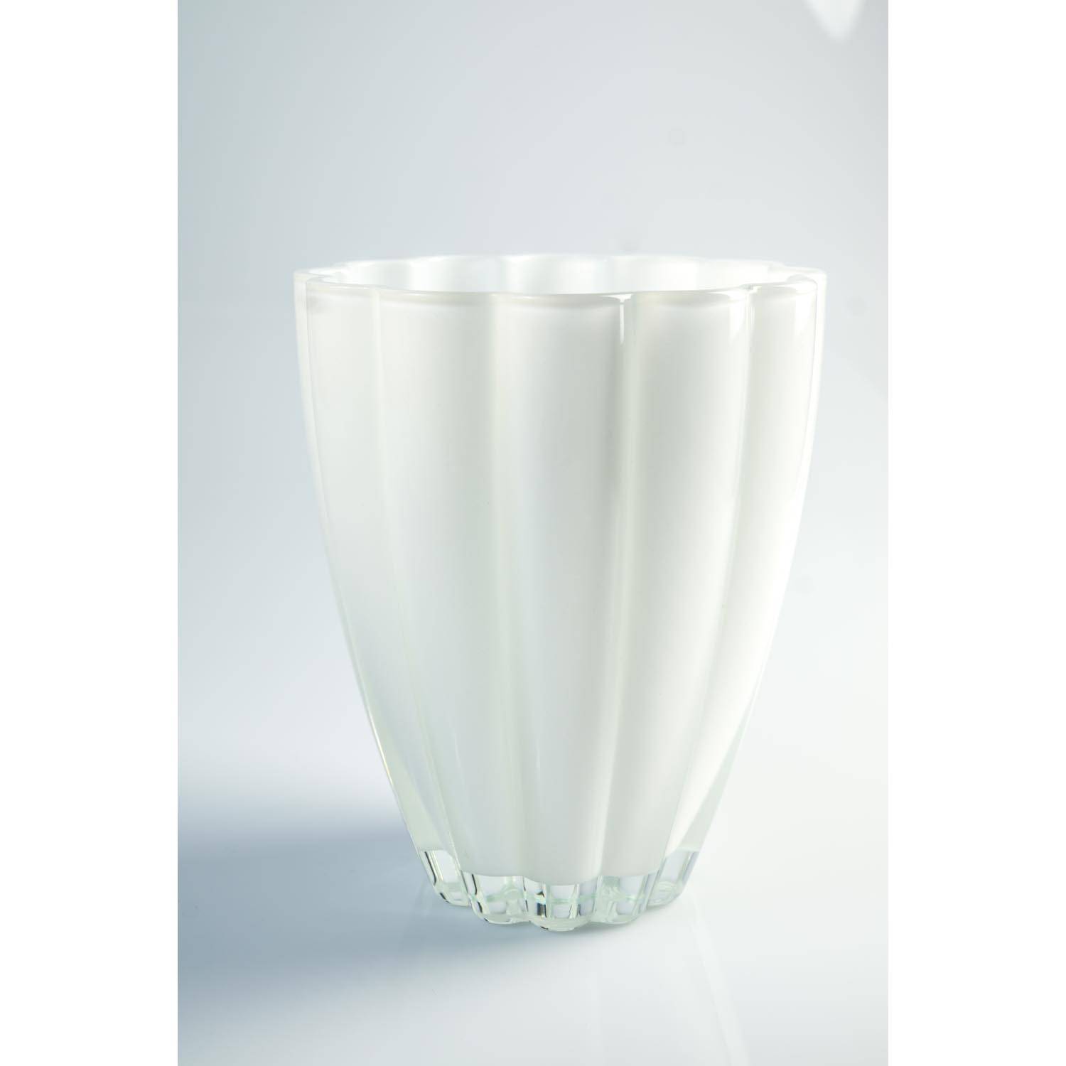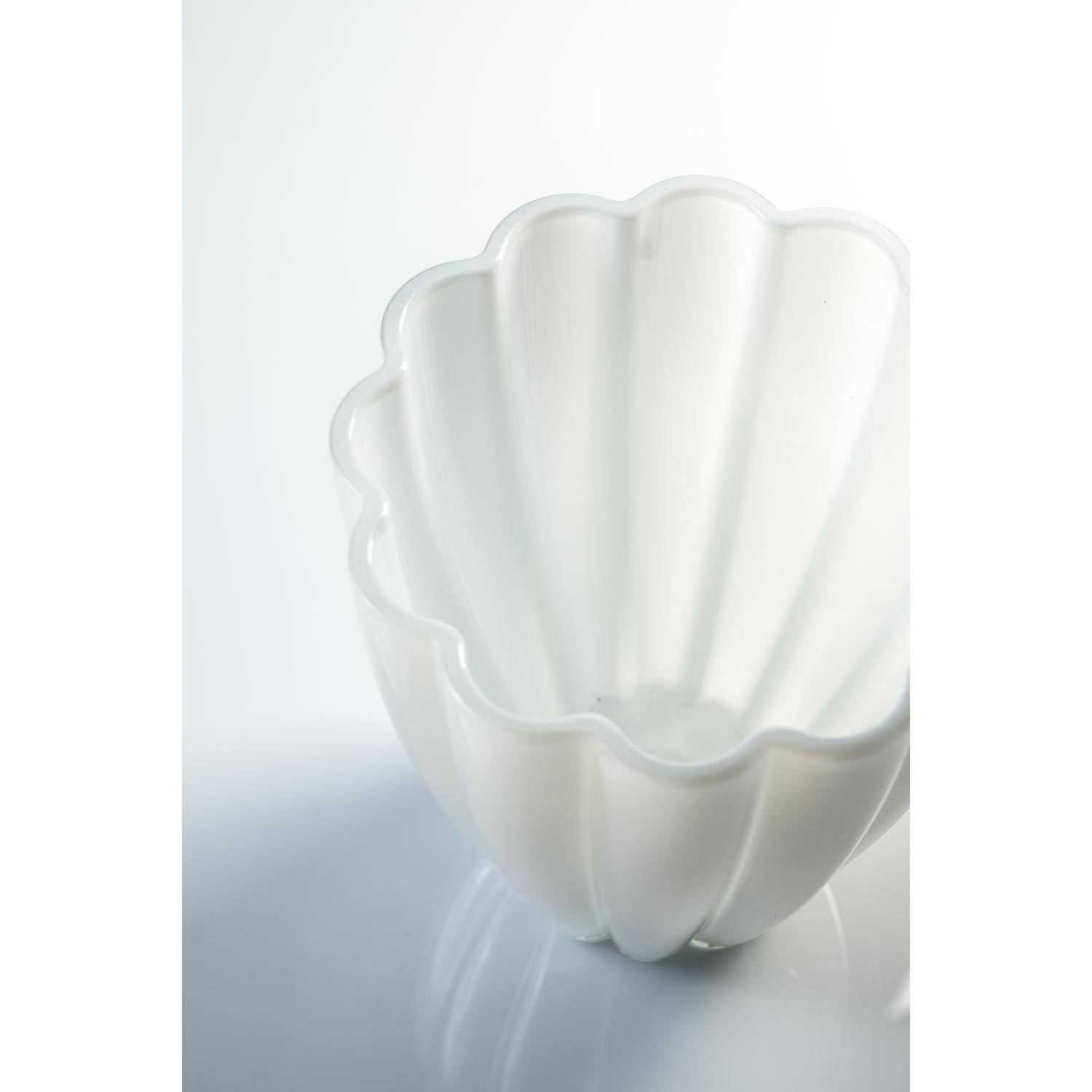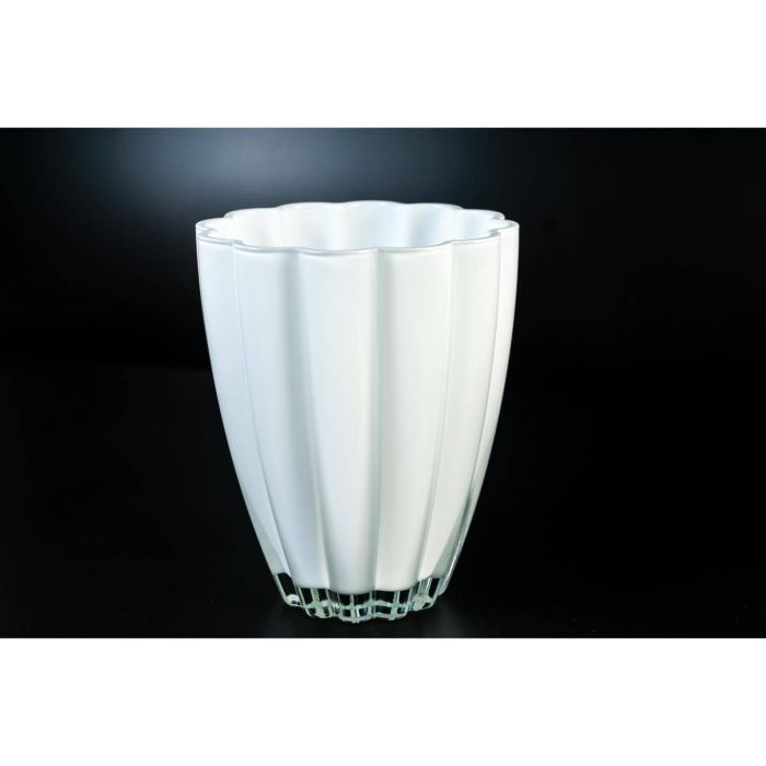 Petit vase BEA en verre massif (5 mm d’épaisseur) de couleur blanche par INNA Glas. Ce joli vase aux parois ondulées mesure 17 cm de haut. Le diamètre extérieur du vase est au-dessus de 14 cm et dans le fond de 8 cm.