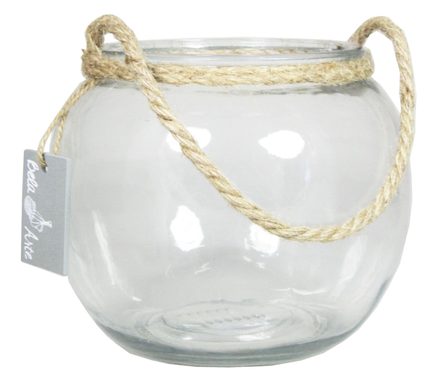 Photophore boule DAVY en verre, avec anse, transparent, 15cm, Ø18cm