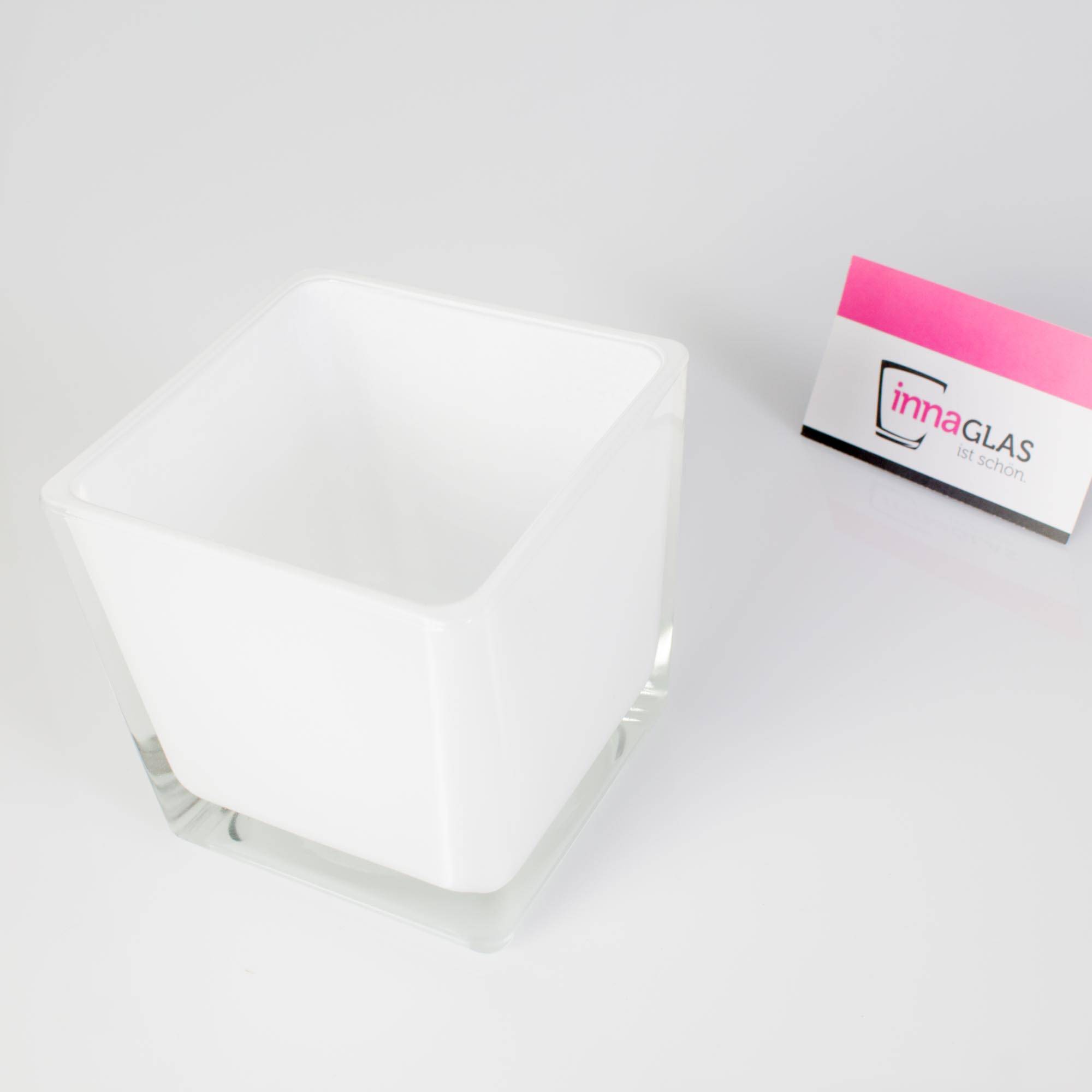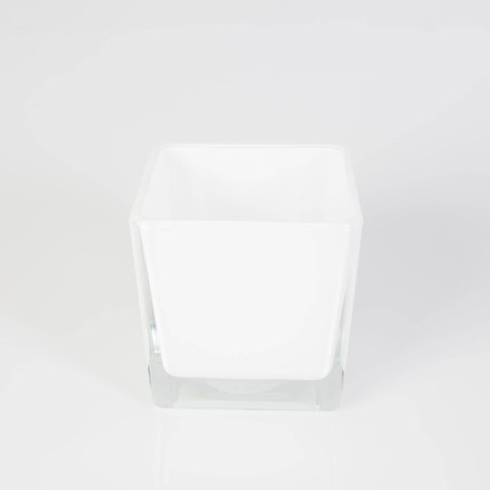 Photophore carré en verre KIM EARTH, blanc, 10x10x10cm