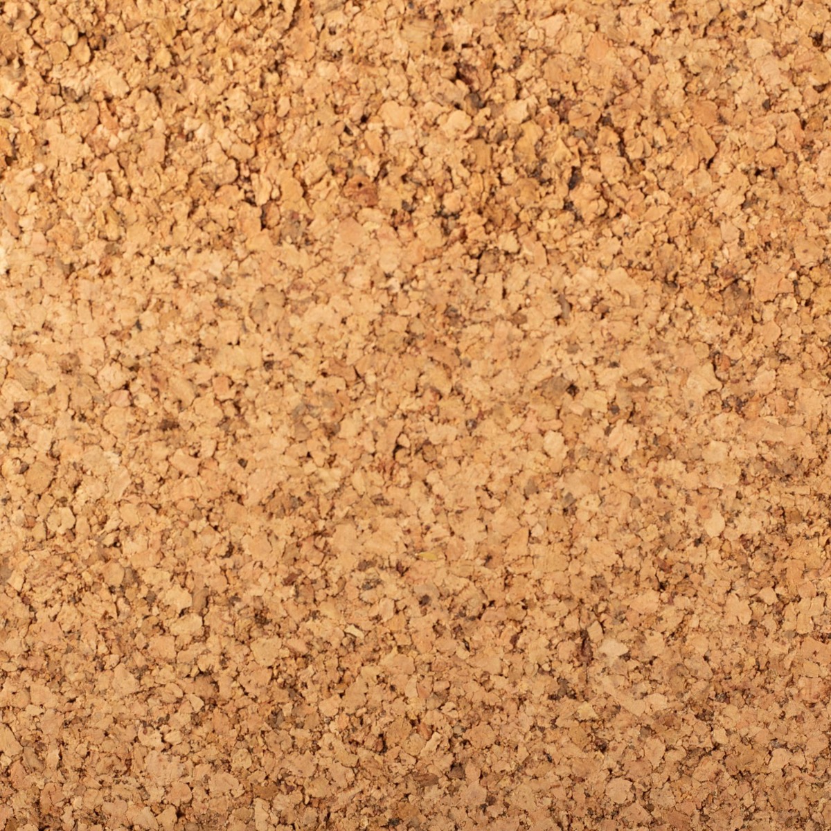 - De couleur brun clair sur support en liège aggloméré, un liant est ajouté aux granulés de liège triés pour former le liège aggloméré, le liant - une colle de qualité alimentaire - fait office de liant naturel et permet aux particules de liège d'adhérer les unes aux autres tout en conservant leurs propriétés uniques