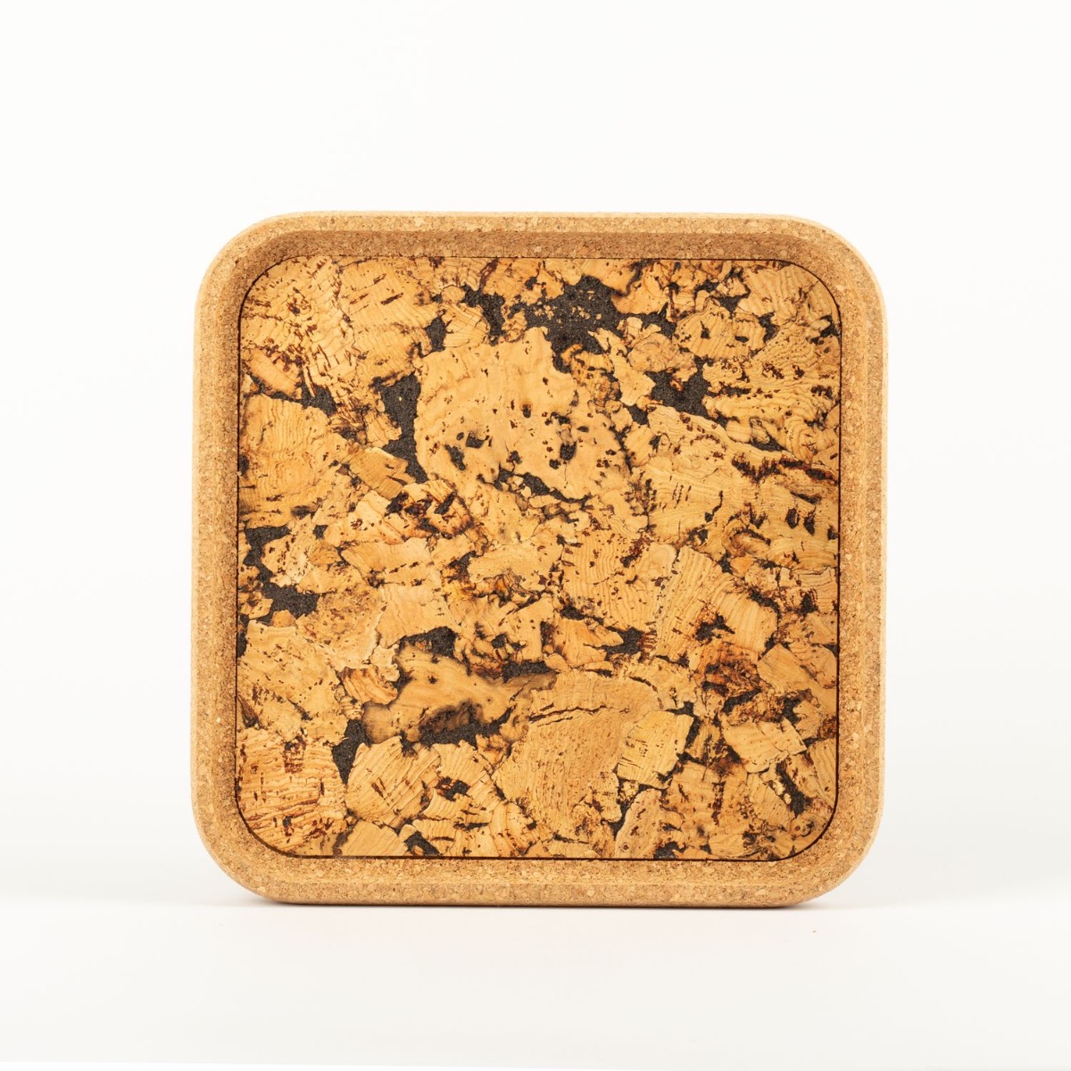 Plateau carré en liège aggloméré FUENTES, naturel-noir, 29x29x3cm