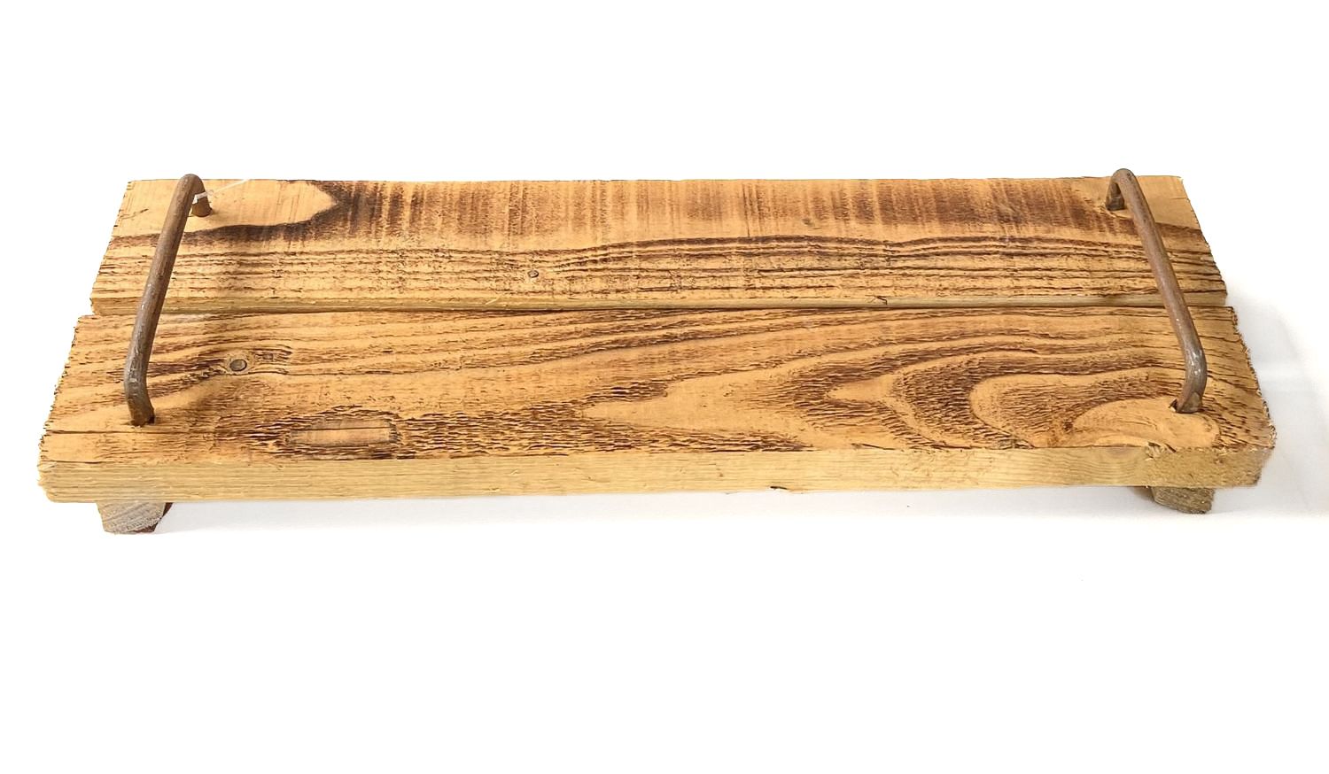 Plateau en bois au style vintage FENRIK avec anse, naturel-flammé, 30x14x4cm